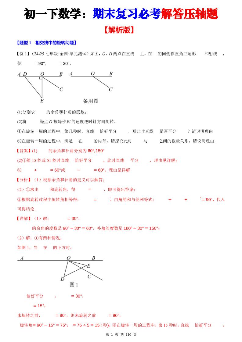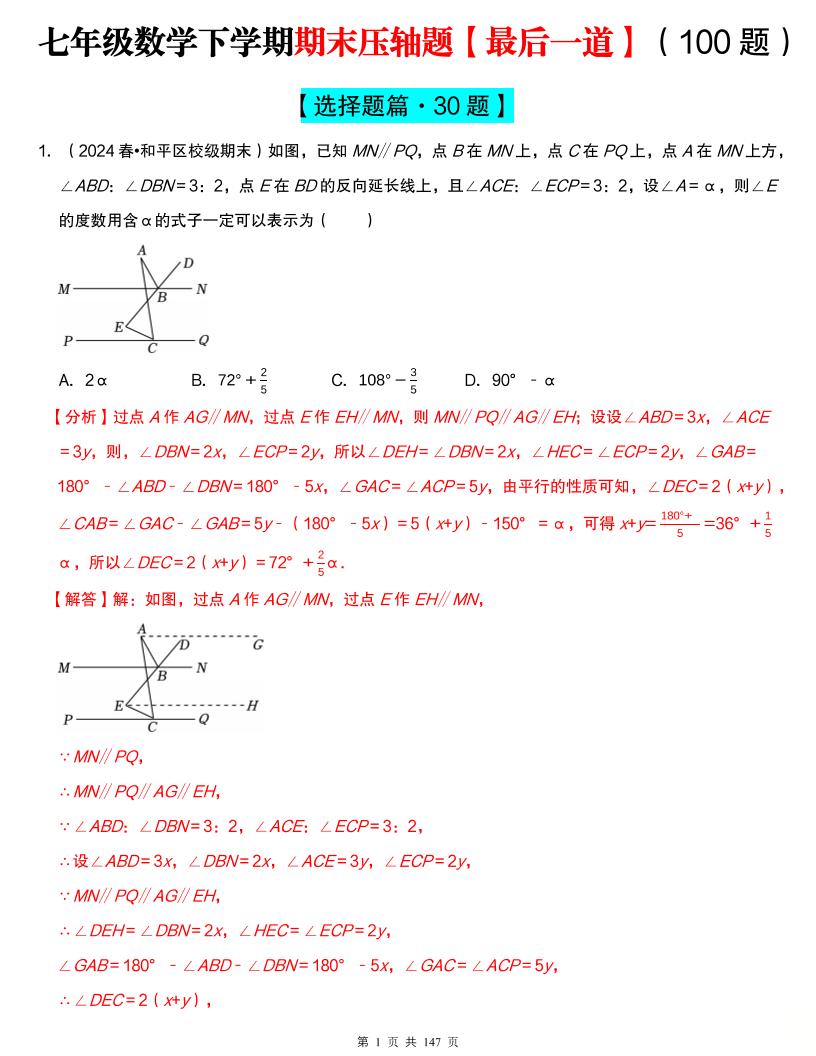 七年级数学下学期期末压轴题【最后一道】(100题)(必考点分类集训)(人教版2024)(解析版)
