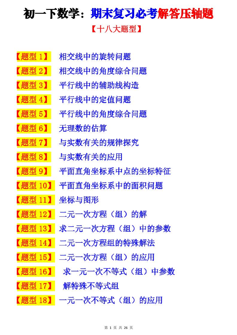 期末复习必考解答压轴题十八大题型总结(人教版2024-2025)(原卷版)