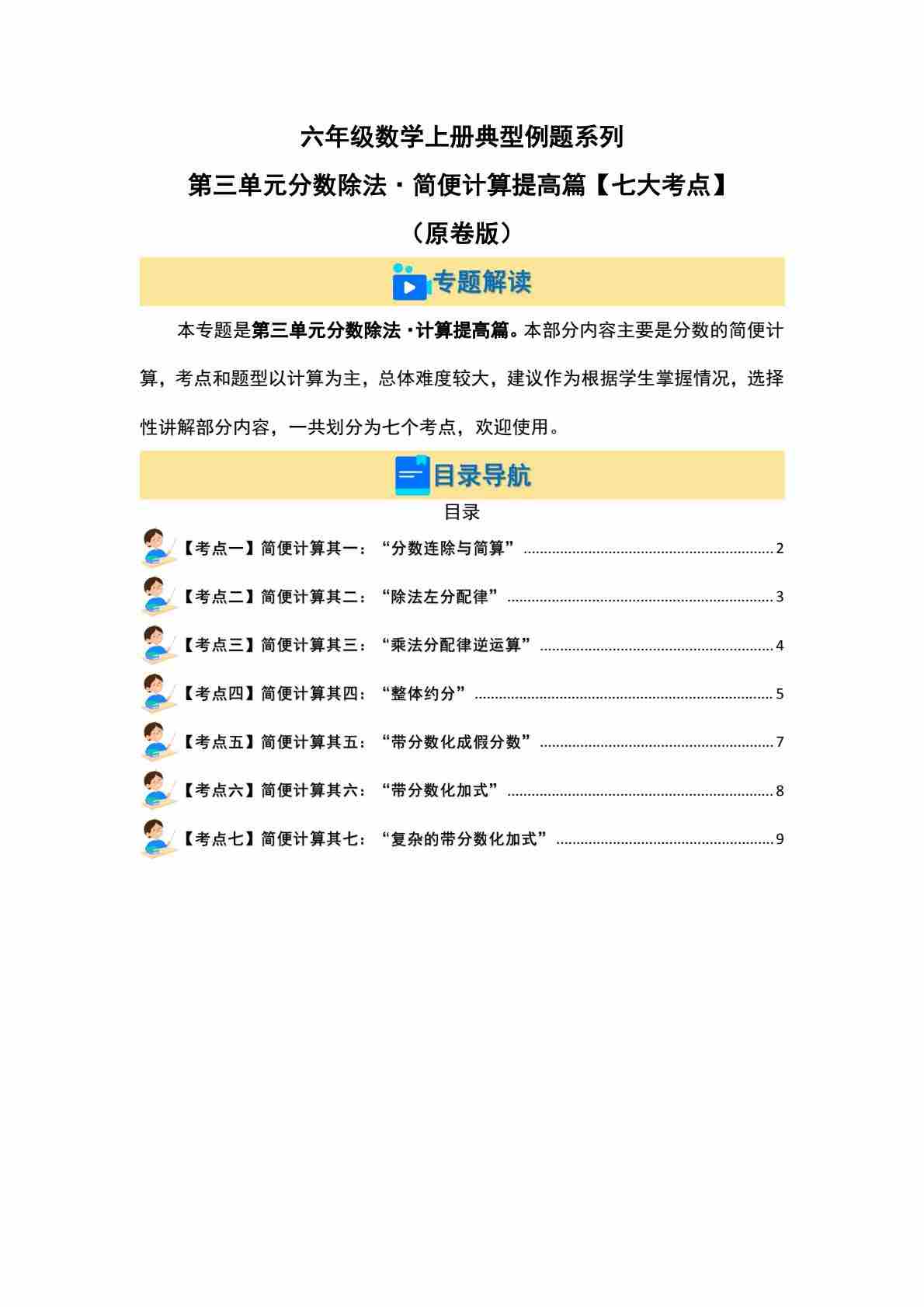 六上人教版数学【第三单元分数除法-简便计算提高篇【七大考点】典型例题系列(原卷版)】