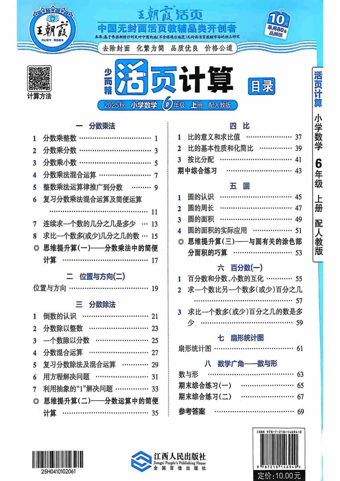 六上人教版数学【2025秋-王朝霞活页计算】