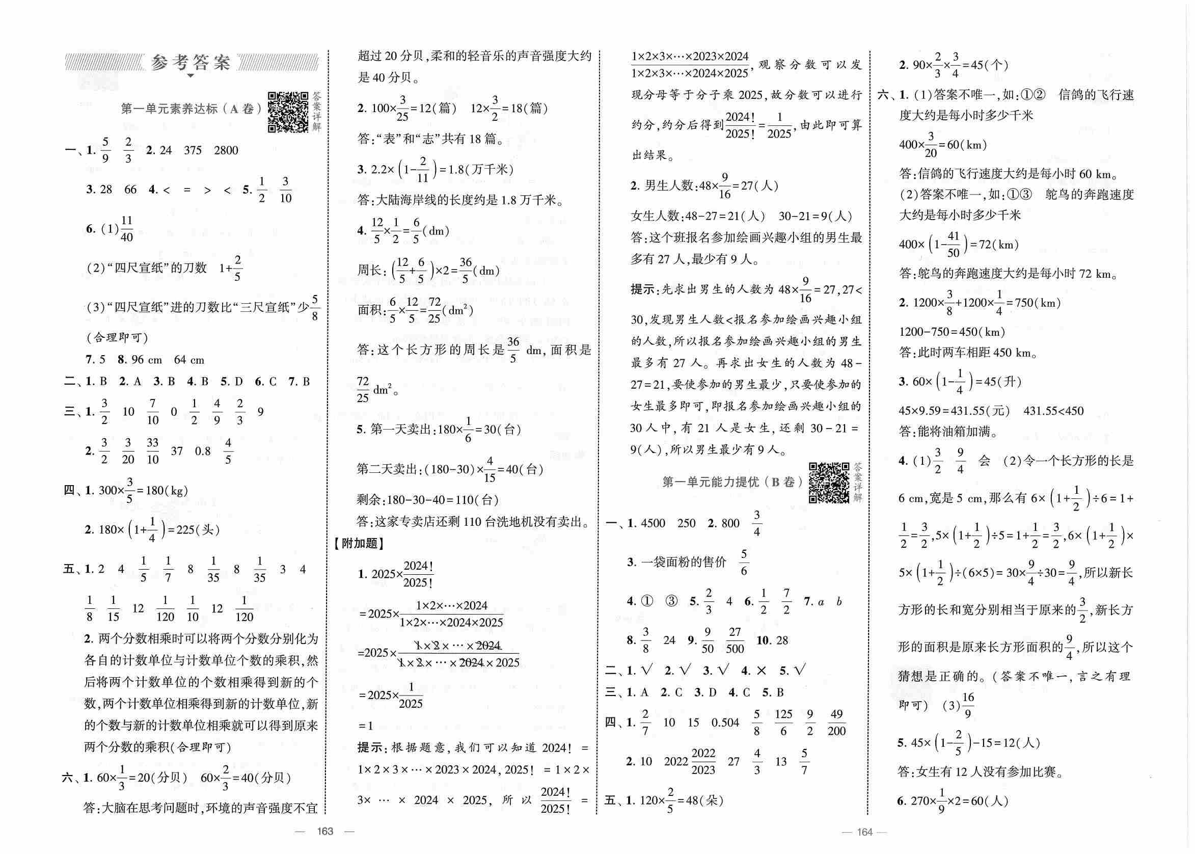 六上人教版数学【25秋-学霸提优大试卷】参考答案