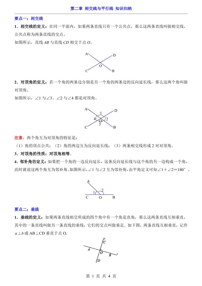 第2章 相交线与平行线(知识归纳)