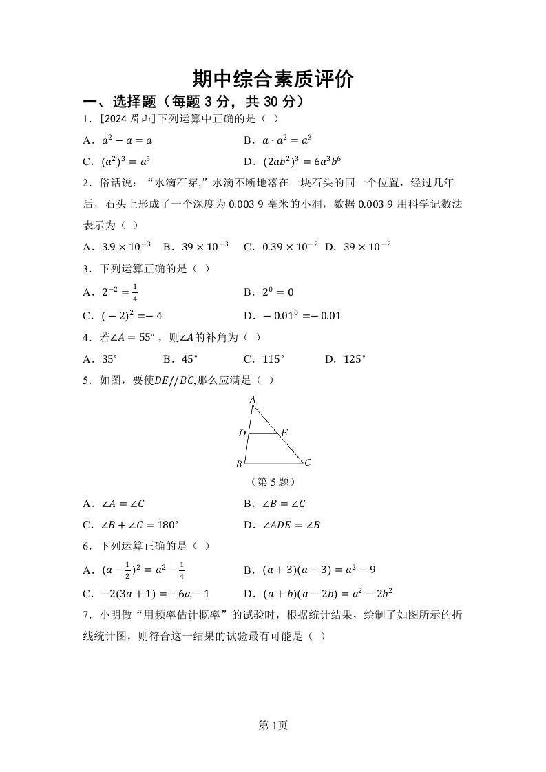2024-2025学年北师大版数学七年级下册 期中综合素质评价(含答案)