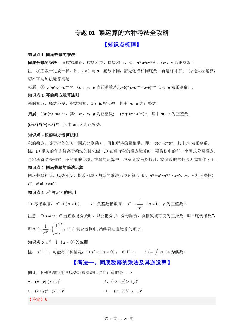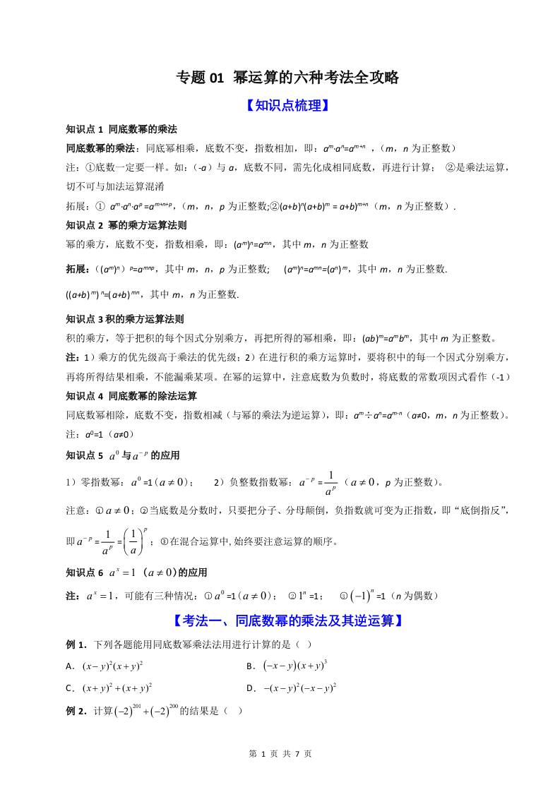专题01 幂运算的六种考法全攻略(解析版)