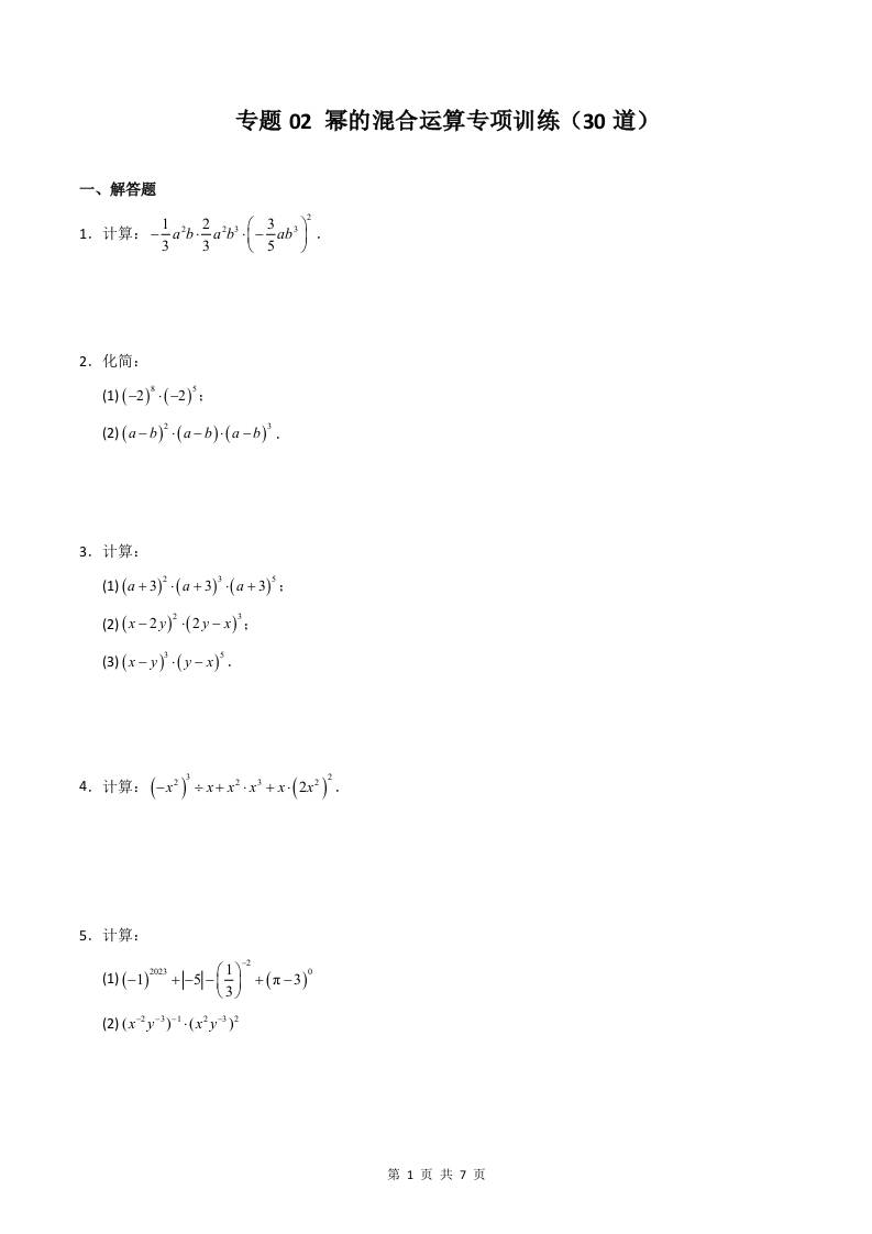 专题02 幂的混合运算专项训练(30道)(原卷版)