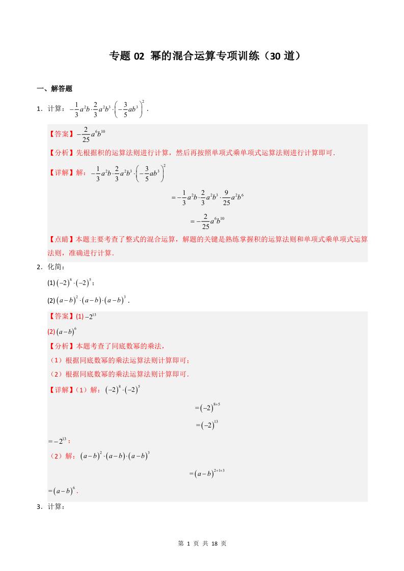 专题02 幂的混合运算专项训练(30道)(解析版)