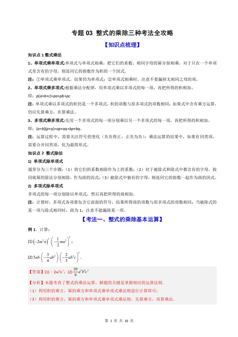专题03 整式的乘除三种考法全攻略(解析版)