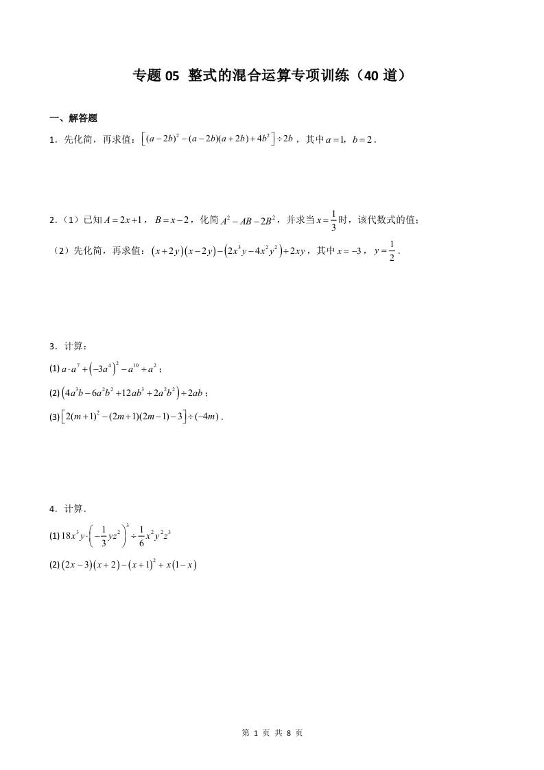 专题05 整式的混合运算专项训练(40道)(原卷版)