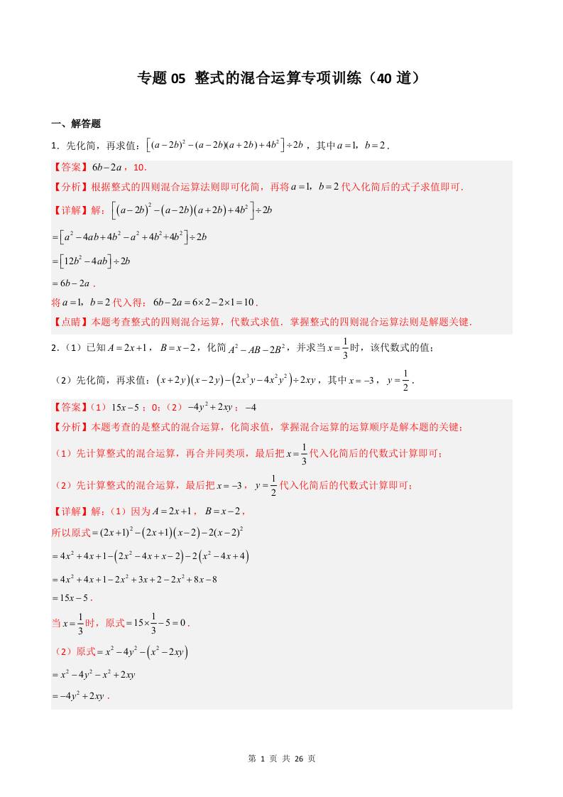 专题05 整式的混合运算专项训练(40道)(解析版)