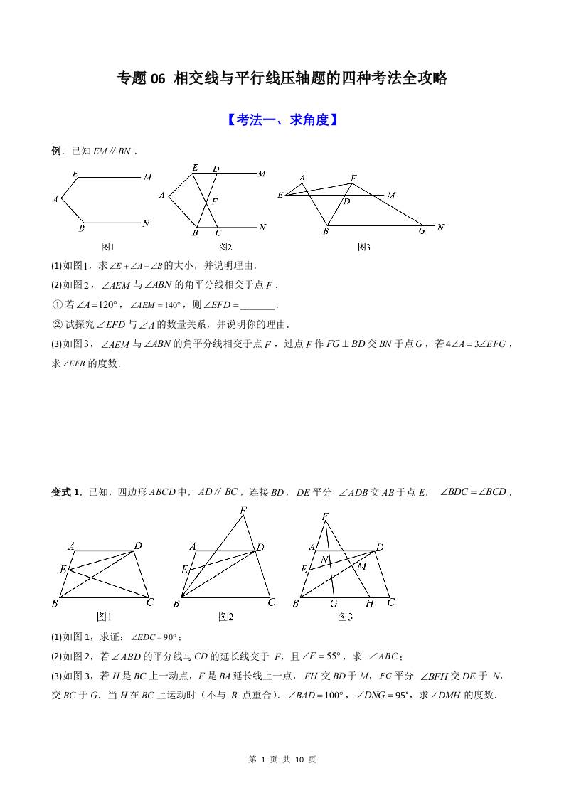 专题06 相交线与平行线压轴题的四种考法全攻略(原卷版)