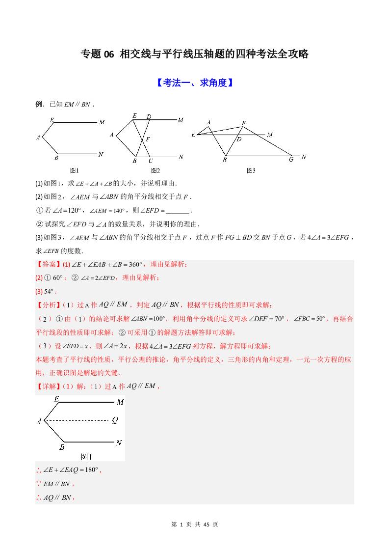 专题06 相交线与平行线压轴题的四种考法全攻略(解析版) - 副本