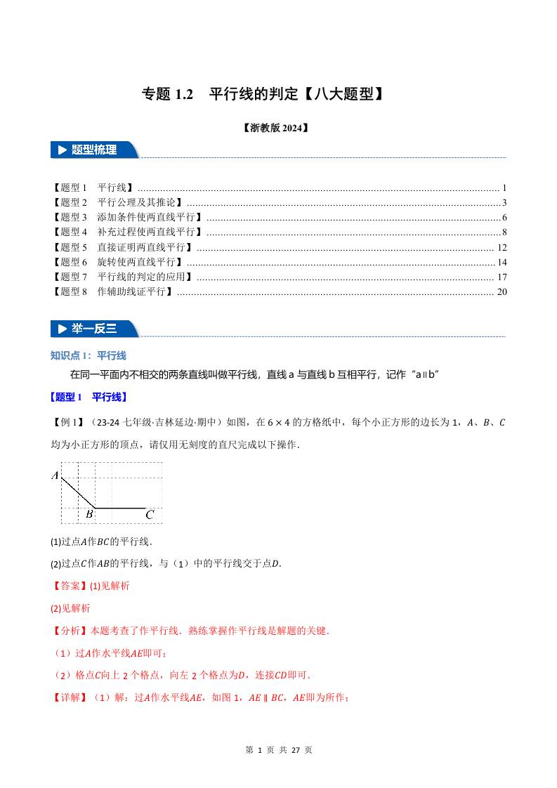 专题1.2 平行线的判定【八大题型】(举一反三)(浙教版2024)(解析版)