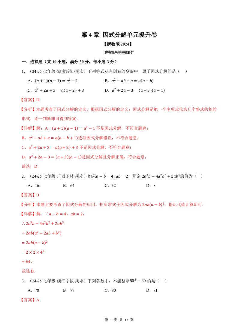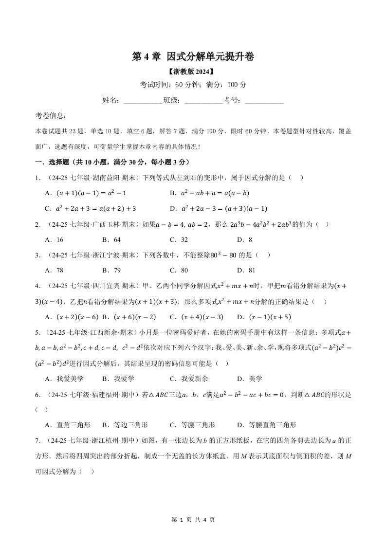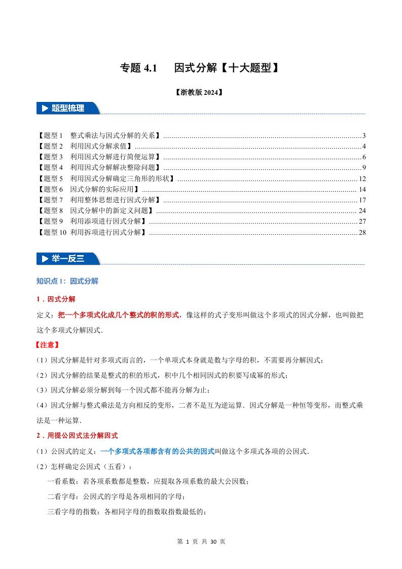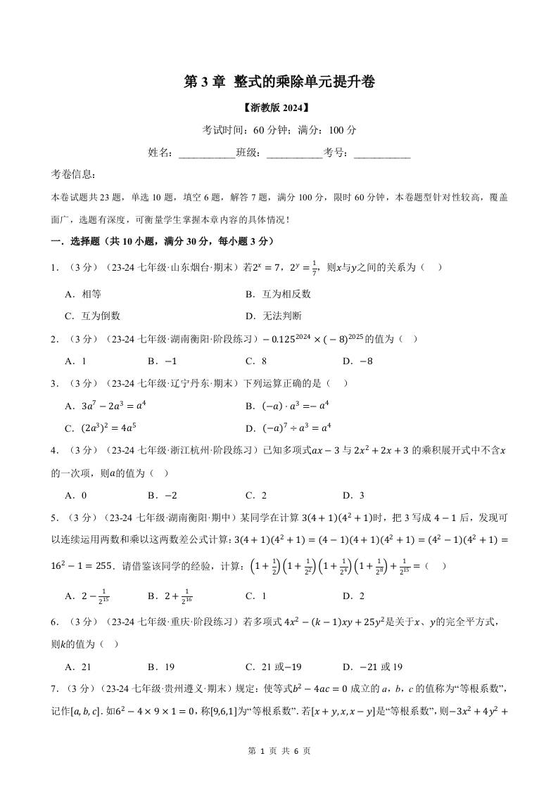 专题3.2 整式的乘除法与化简【十大题型】(举一反三)(浙教版2024)(原卷版)