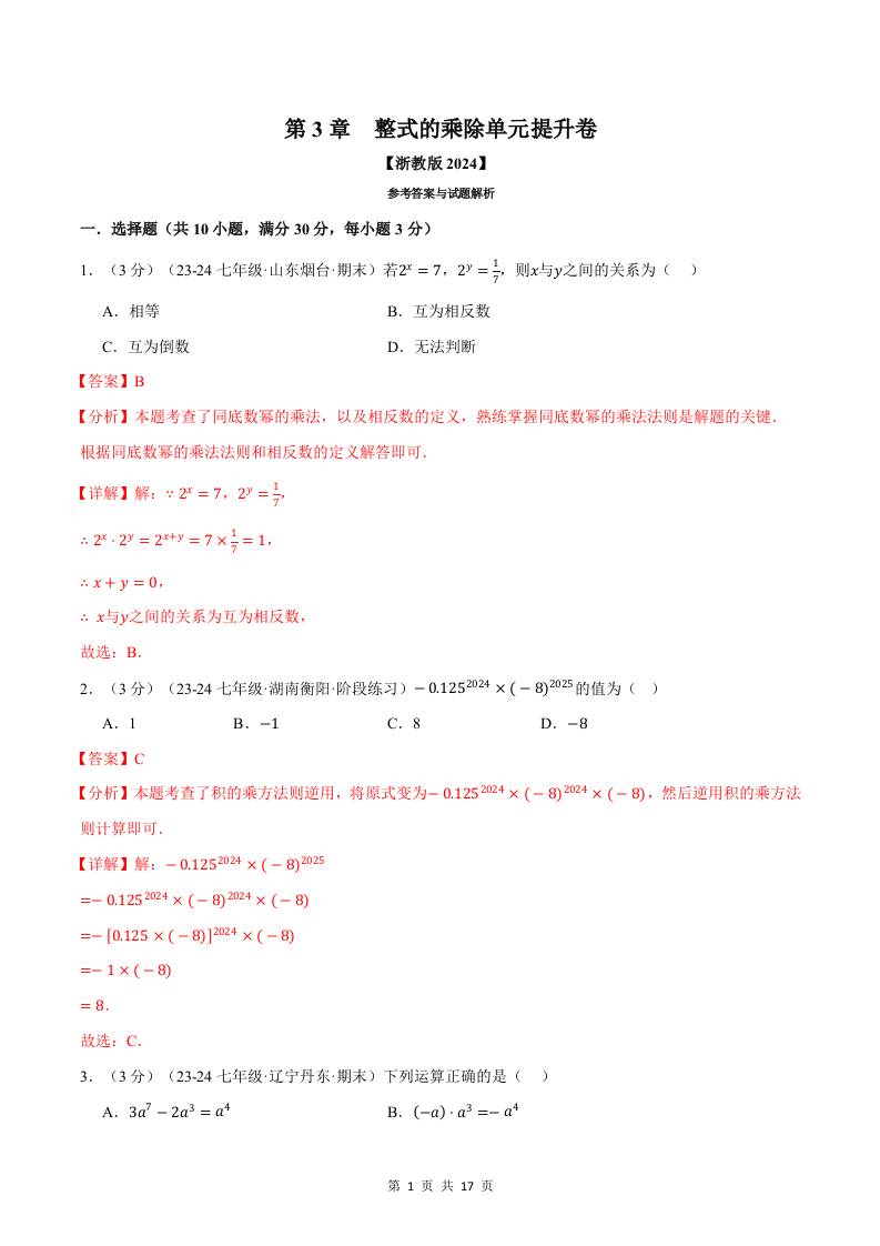 专题3.6 整式的乘除单元提升卷(原卷版)