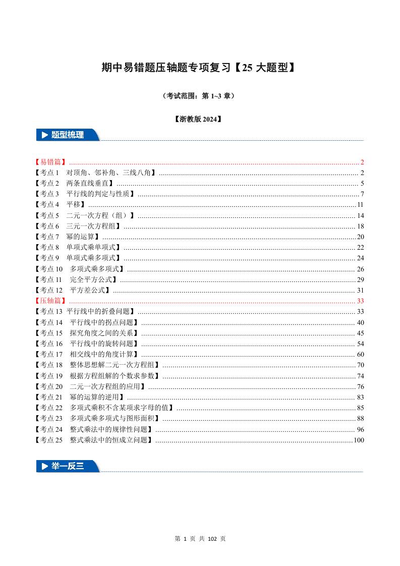 期中易错题压轴题专项复习【25大题型】(原卷版)