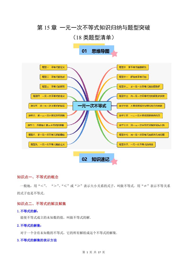第15章 一元一次不等式 知识归纳与题型突破(18类题型清单)(解析版)