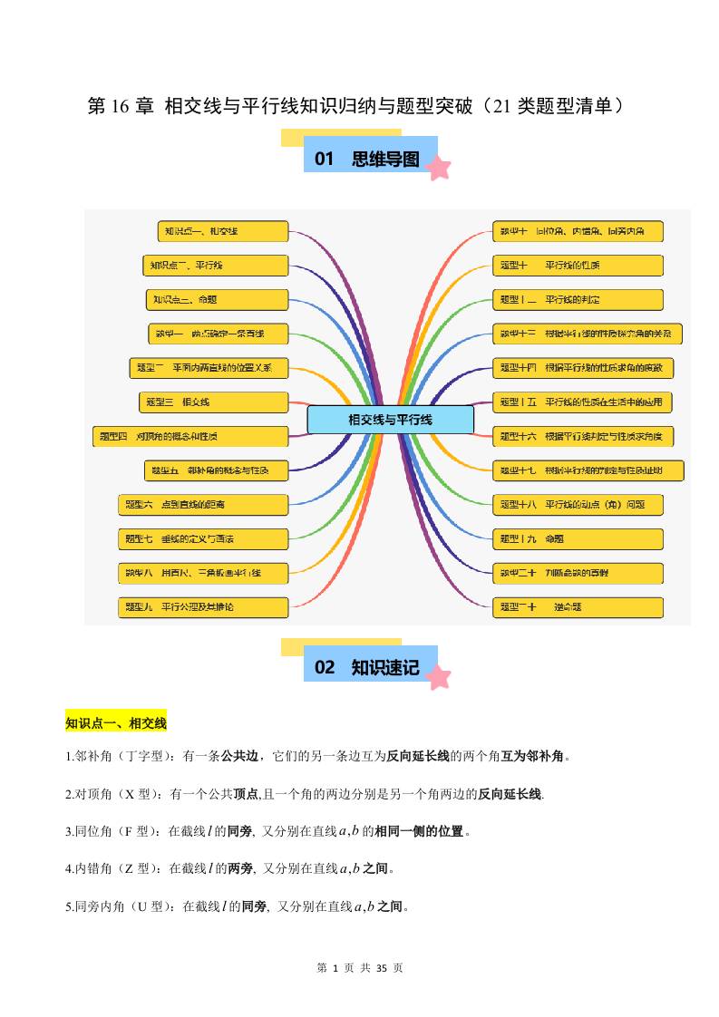 第16章 相交线与平行线 知识归纳与题型突破(21类题型清单)(解析版)