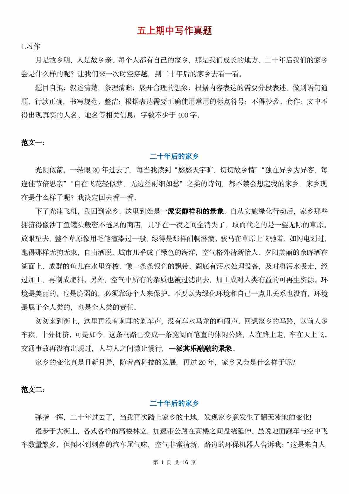 五(上)语文【期中写作复习】