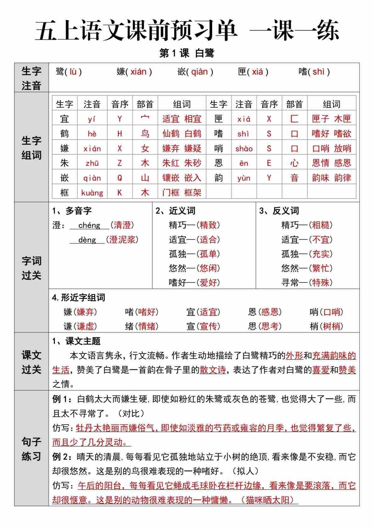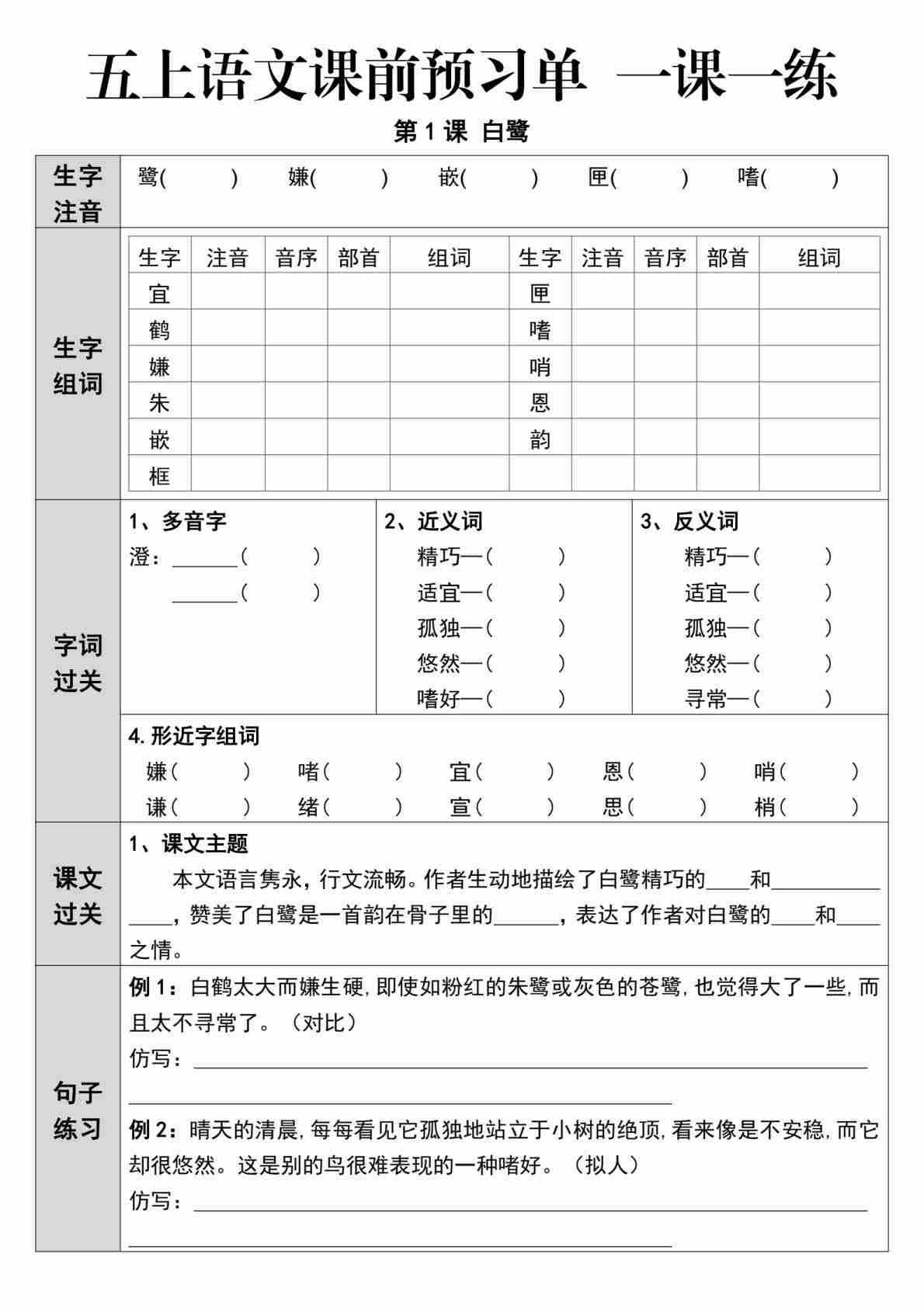 五(上)语文1-8单元默写通关训练(附答案19页)