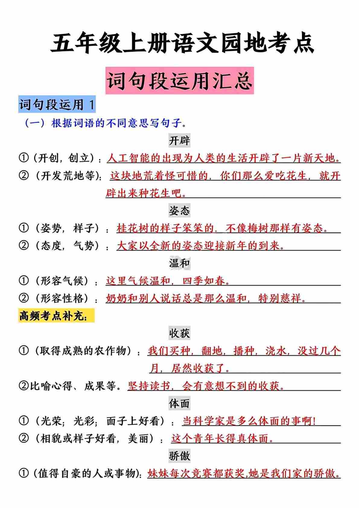 五年级(上)语文 1-8单元语文园地高频考点归纳