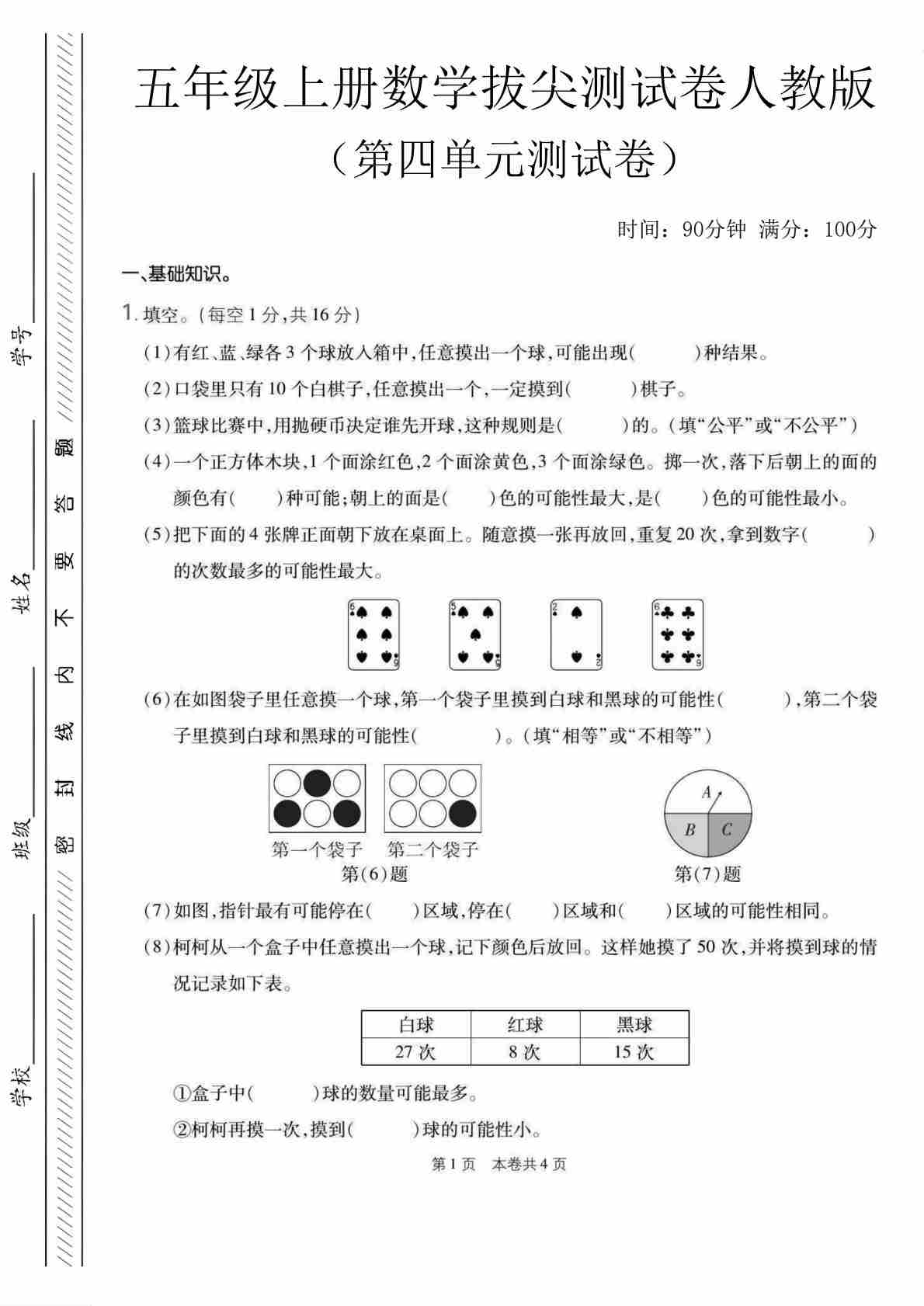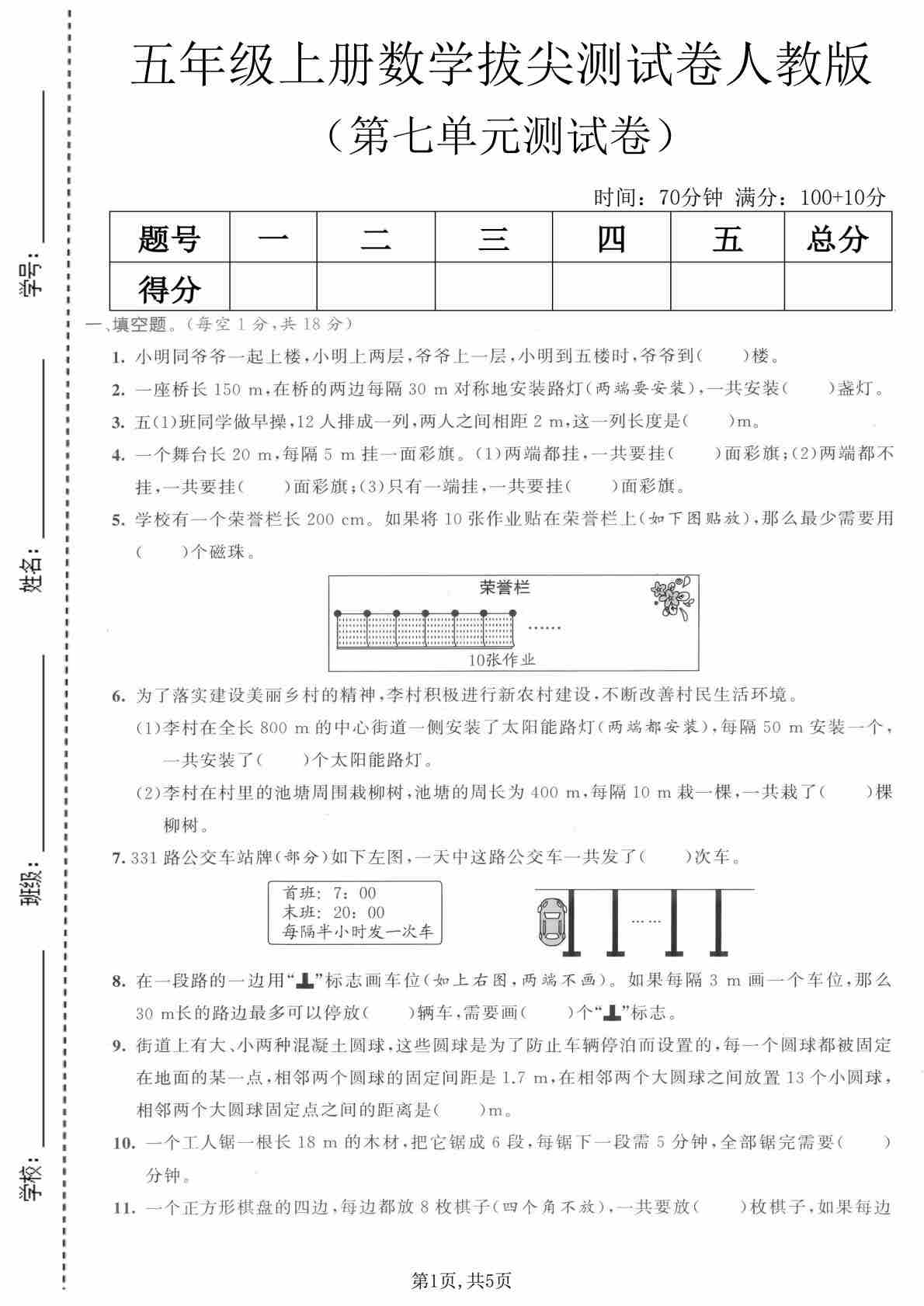 五年级(上)数学第七单元拔尖测试卷《人教版》