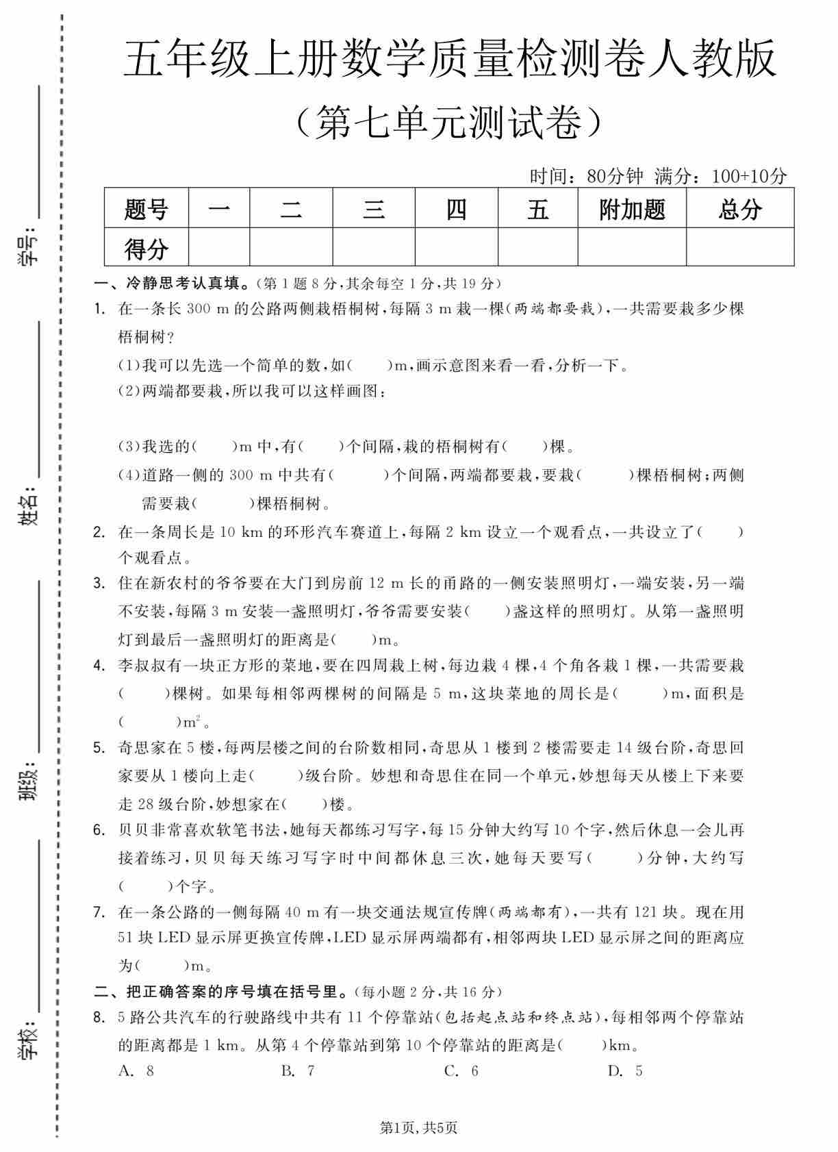五(上)数学(人教版)第七单元 检测卷 一