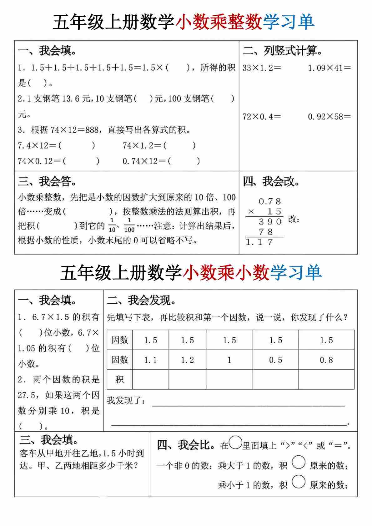 五年级(上)数学第一单元小数除法·计算篇《人教版》