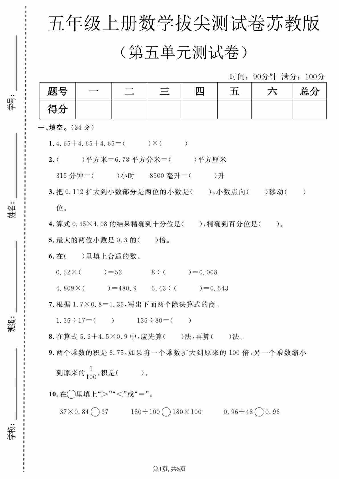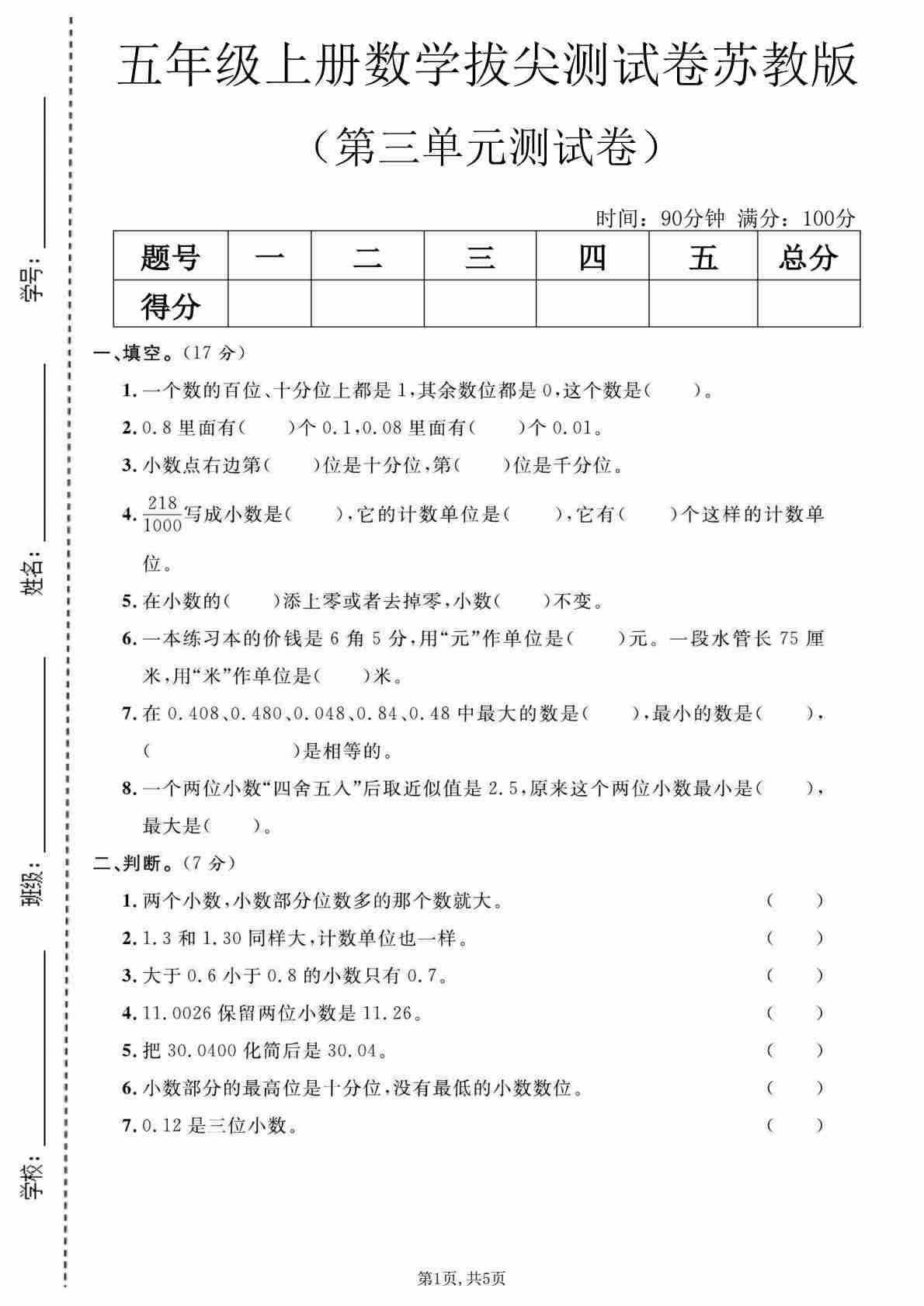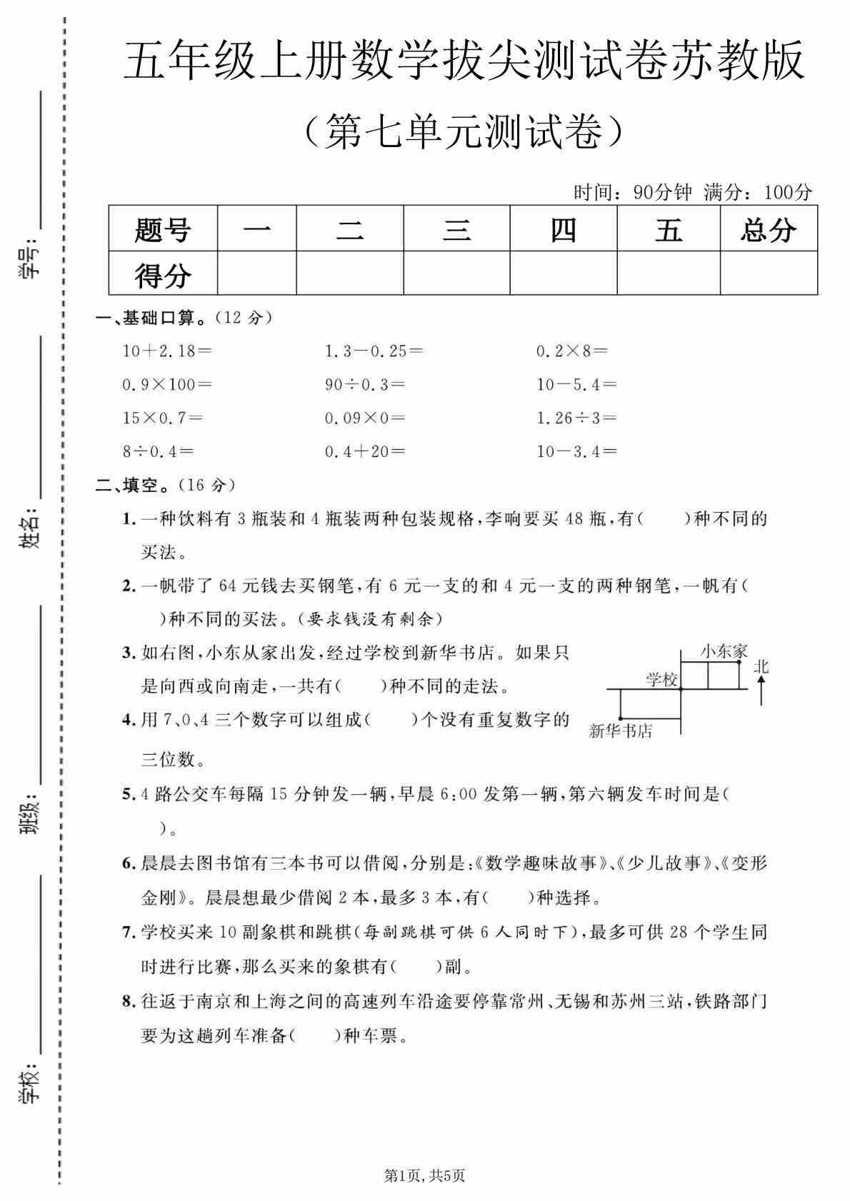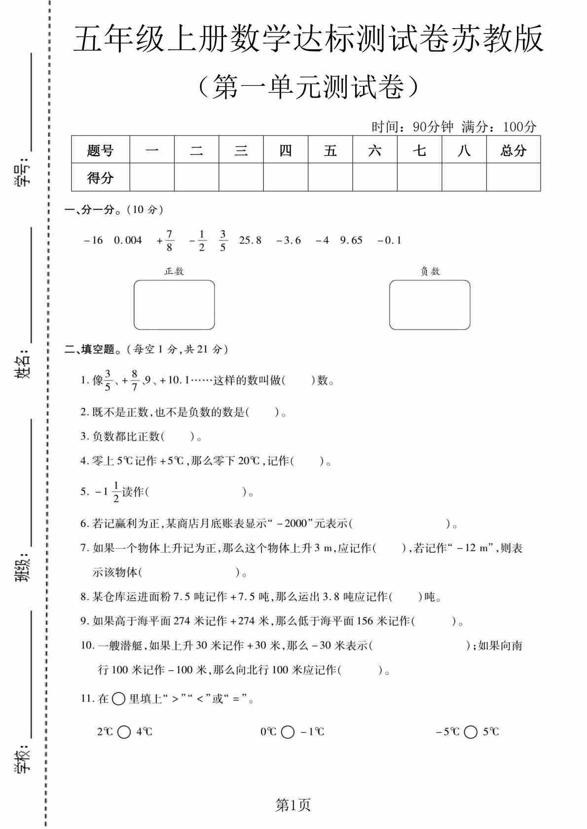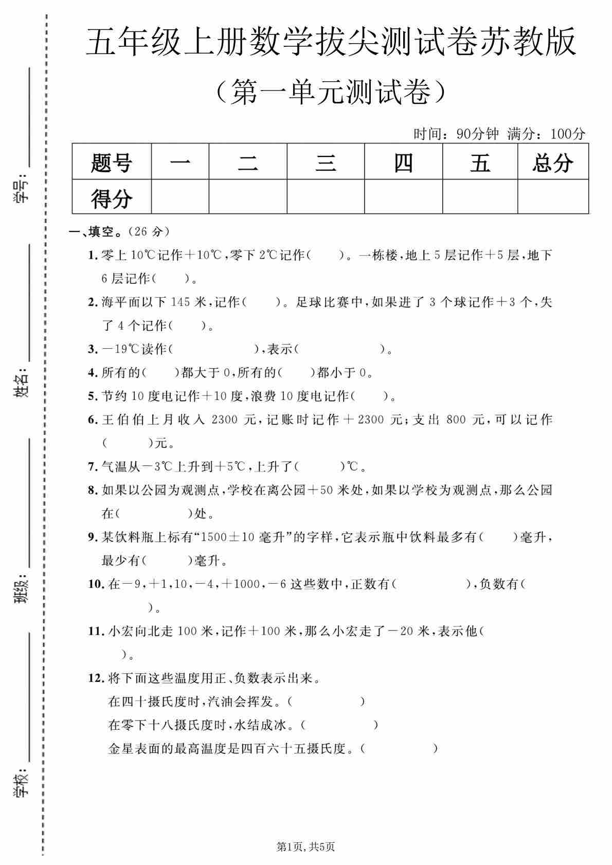 五(上)数学苏教版【2025秋-第一单元综合冲刺卷】