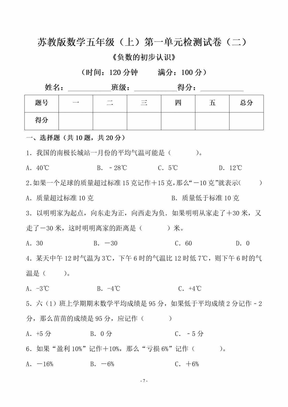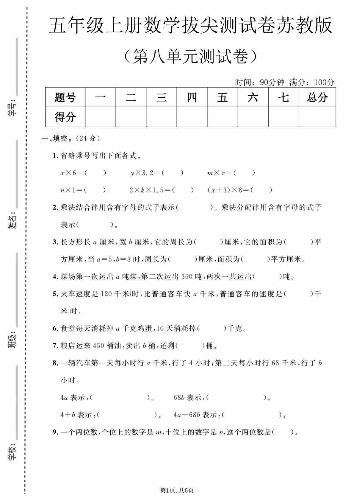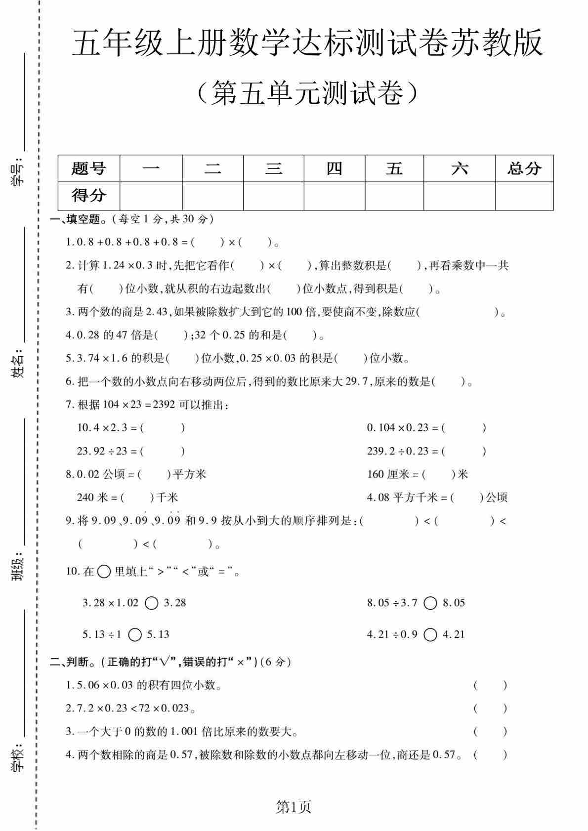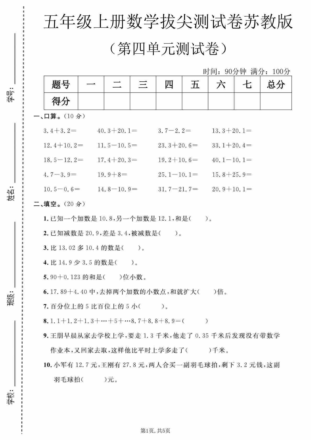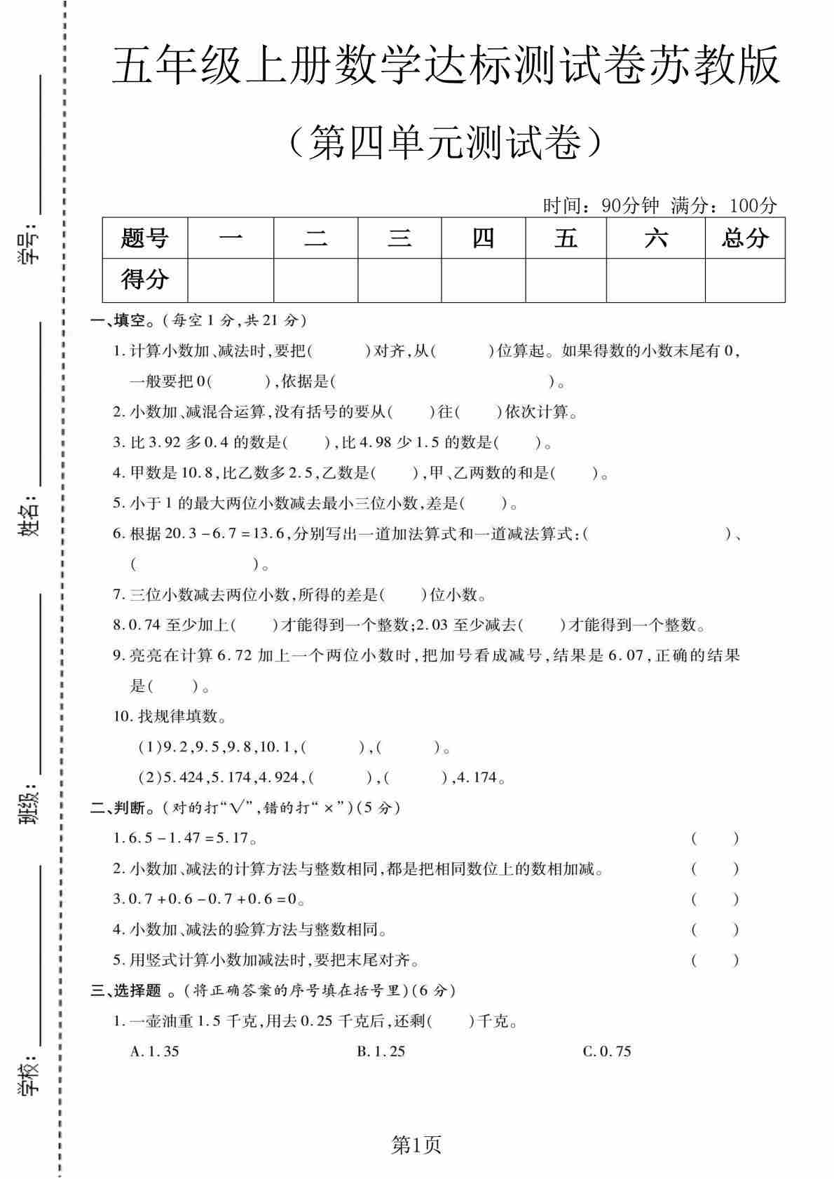 五(上)数学苏教版【2025秋-第一单元综合冲刺卷】