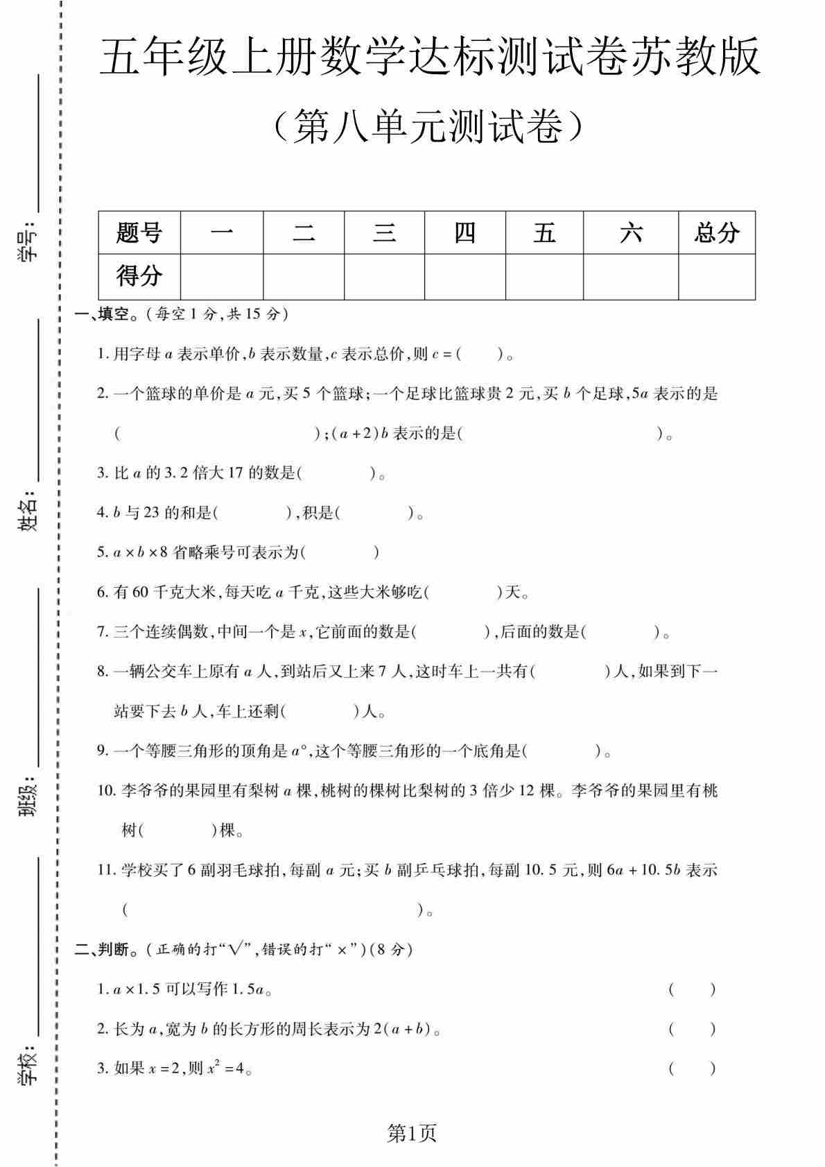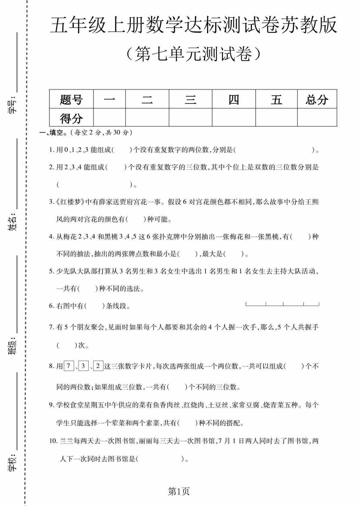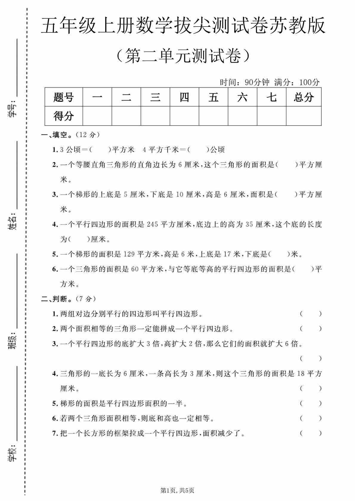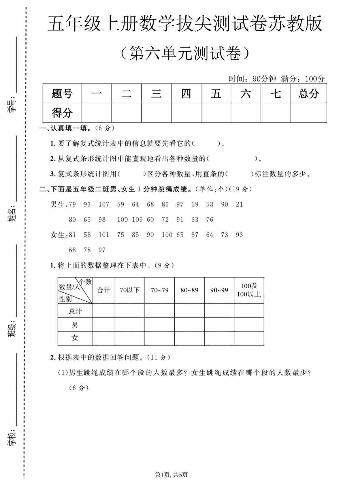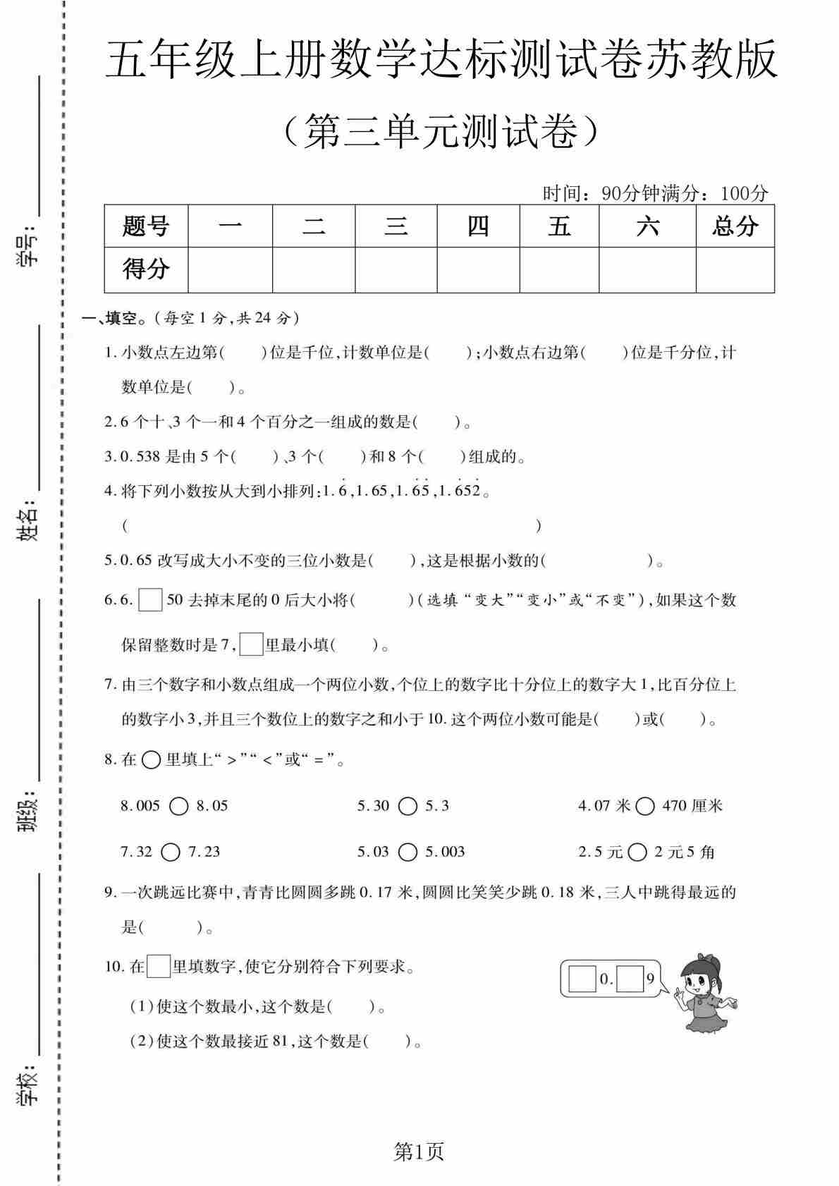五(上)数学苏教版【2025秋-第一单元综合冲刺卷】