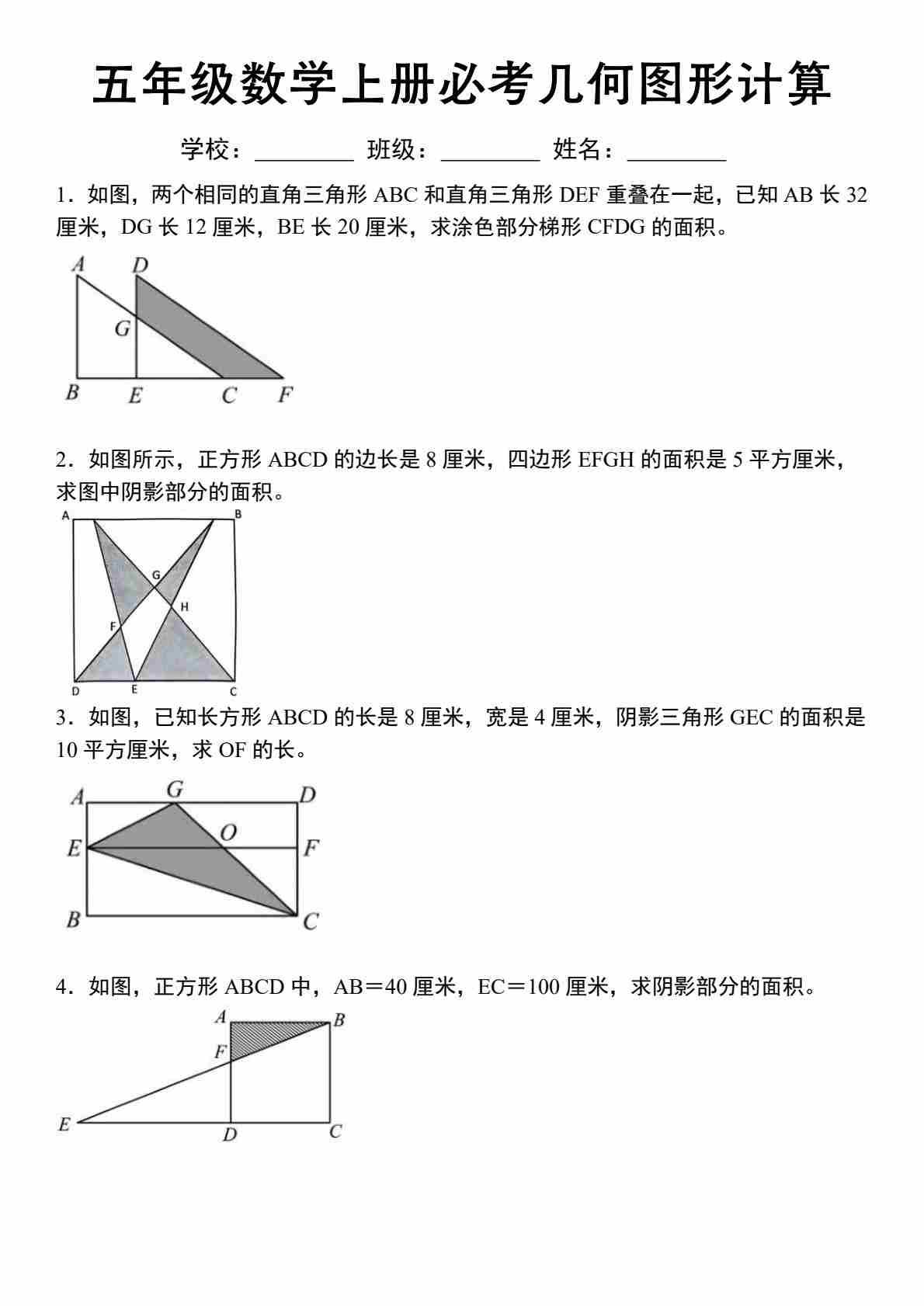 五上苏教版数学上册必考几何图形计算