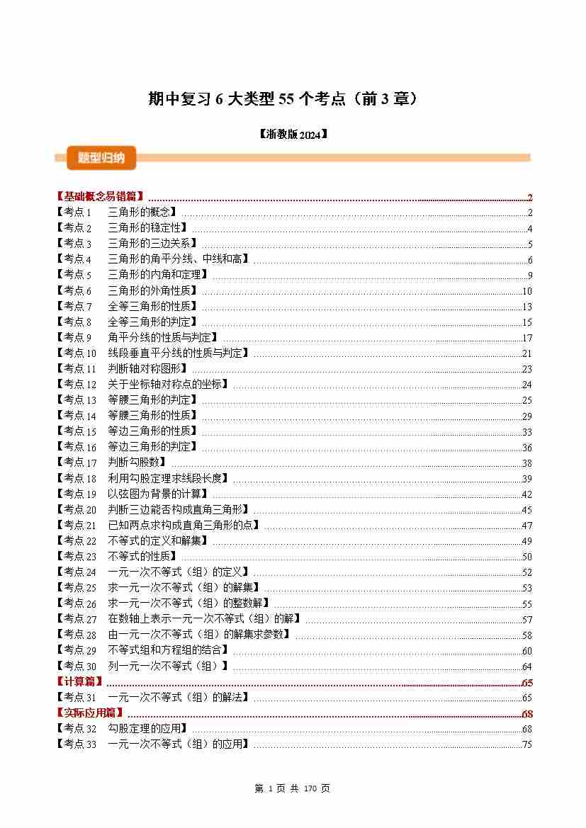 期中复习6大类型55个考点(举一反三期中专项训练)浙教版2024(解析版)