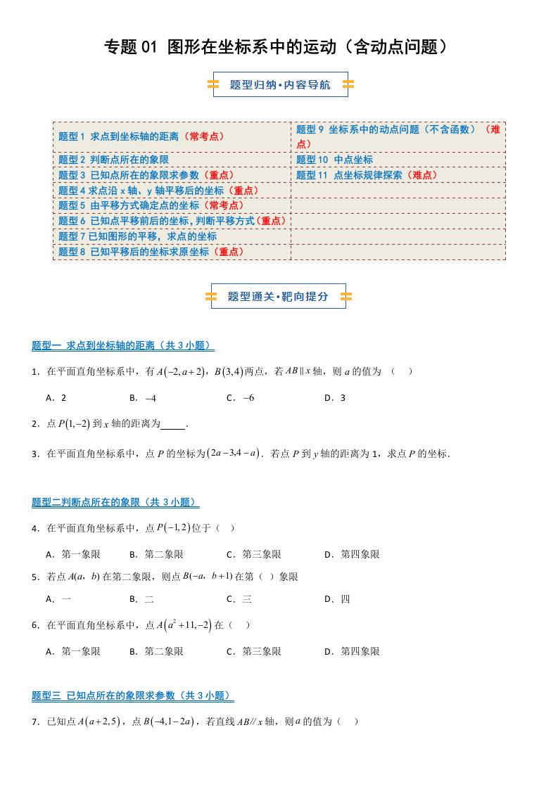 【八上沪科数学】专题01图形在坐标系中的运动(含动点问题)(期中专项训练)(原卷版)八年级数学上学期新教材沪科版