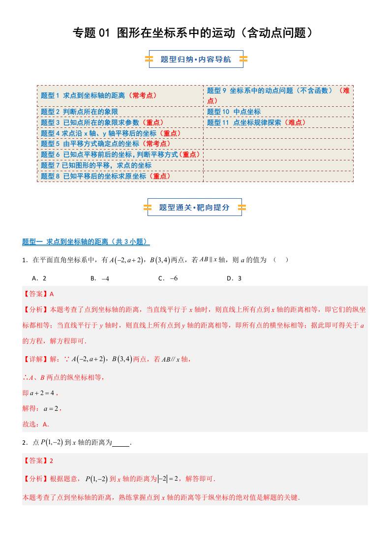 【八上沪科数学】专题01图形在坐标系中的运动(含动点问题)(期中专项训练)(解析版)八年级数学上学期新教材沪科版