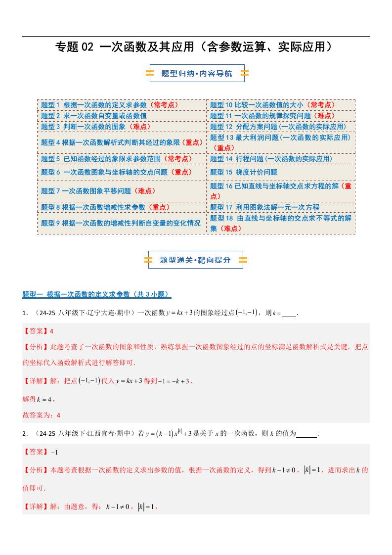 【八上沪科数学】专题02 一次函数及其应用(含参数运算、实际应用)(期中专项训练)(解析版)八年级数学上学期新教材沪科版