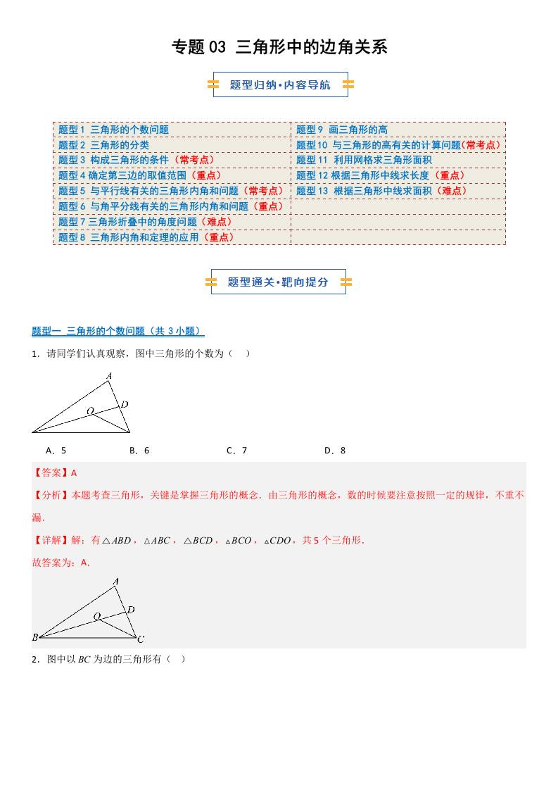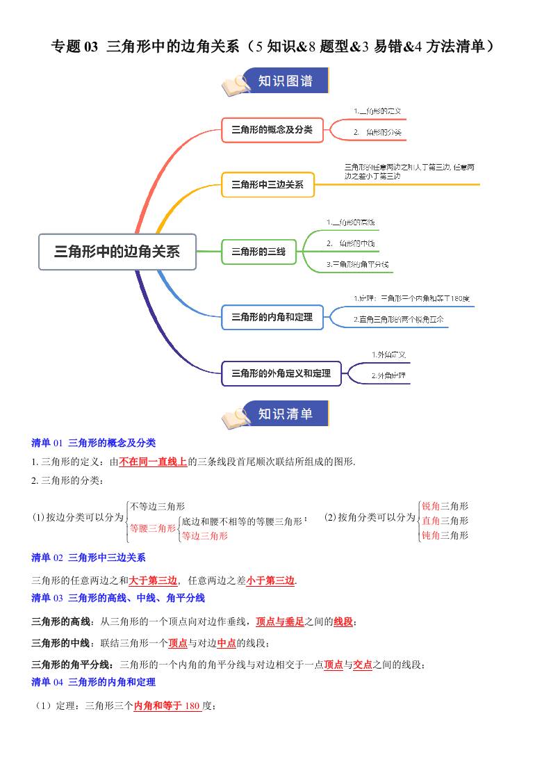 【八上沪科数学】清单03 三角形中的边角关系(5知识&8题型&3易错&4方法清单)(期中知识清单)(解析版)八年级数学上学期新教材沪科版