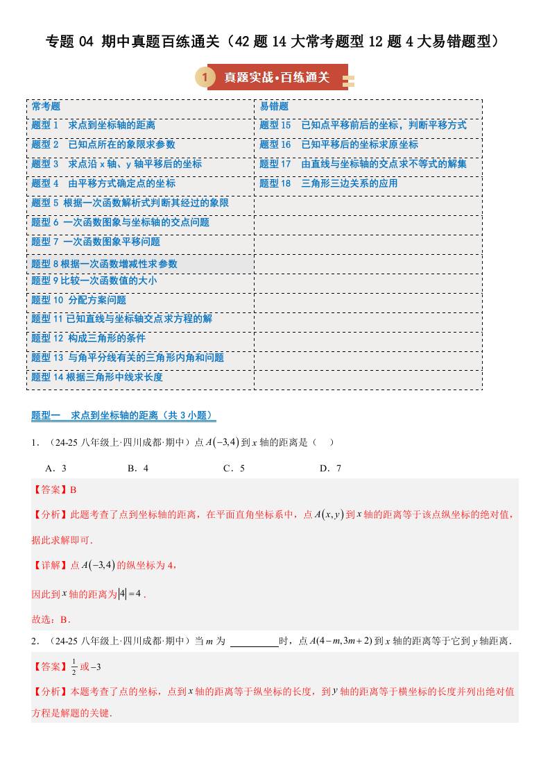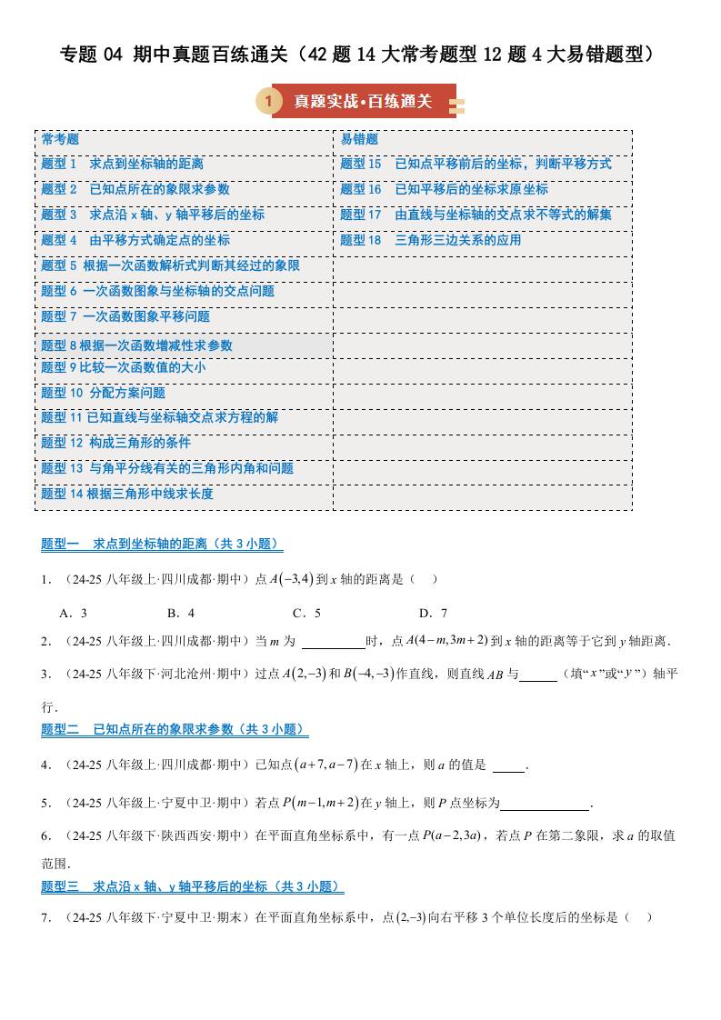 期中复习4大类型22个考点(举一反三期中专项训练)(学生版)
