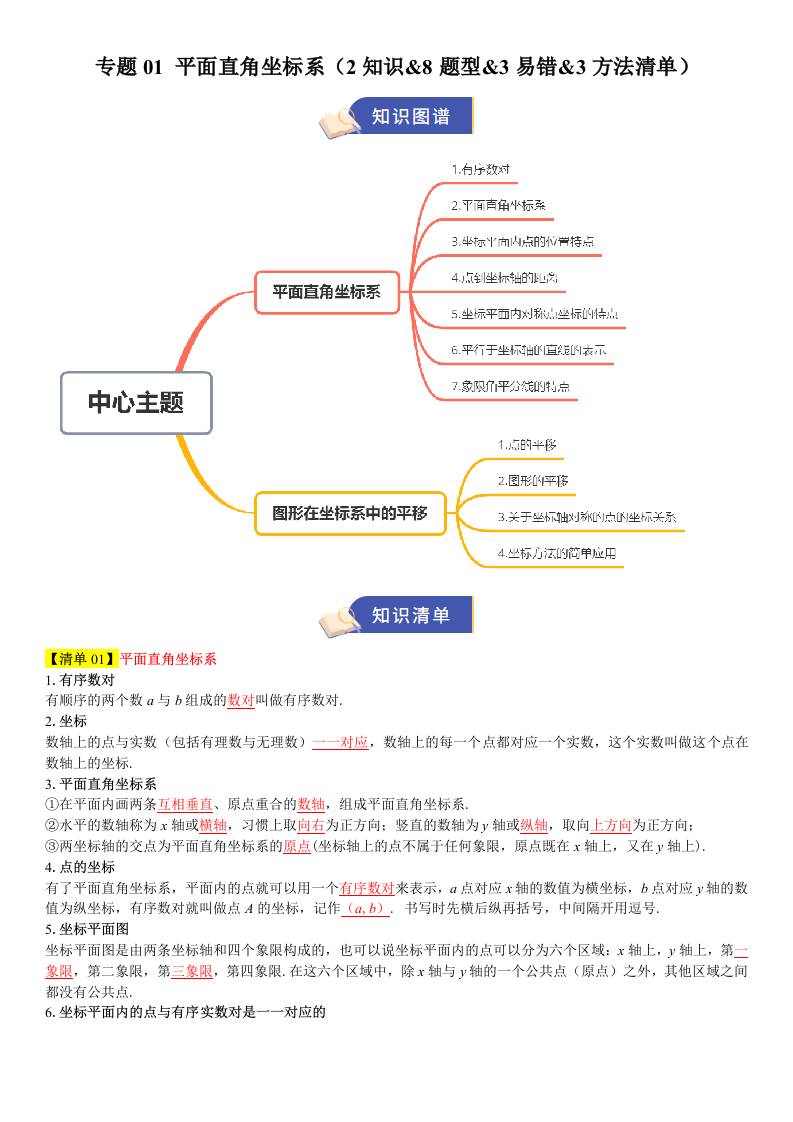 【八上沪科数学】清单01 平面直角坐标系(2知识&8题型&3易错&3方法清单)(期中知识清单)(原卷版)八年级数学上学期新教材沪科版