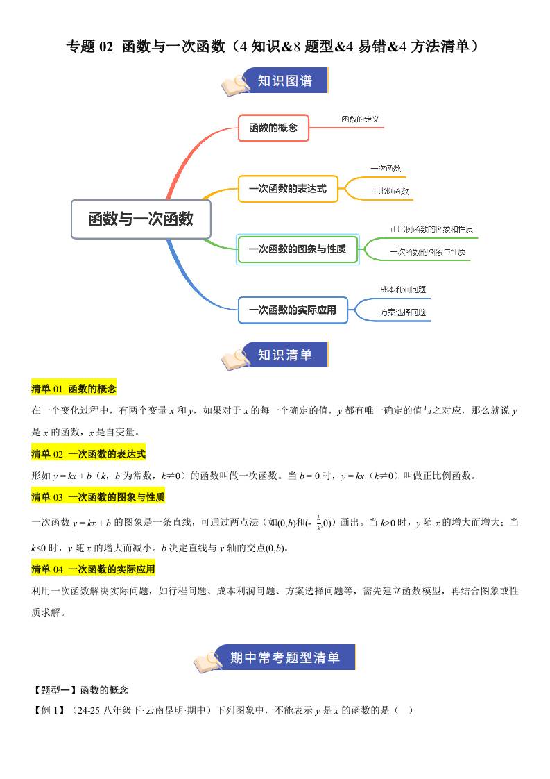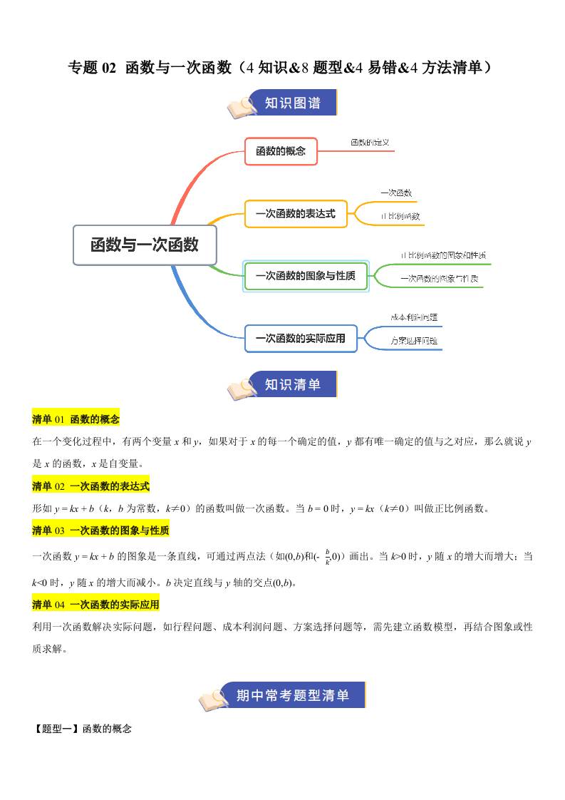 【八上沪科数学】清单02 函数与一次函数(4知识&8题型&4易错&4方法清单)(期中知识清单)(原卷版)八年级数学上学期新教材沪科版