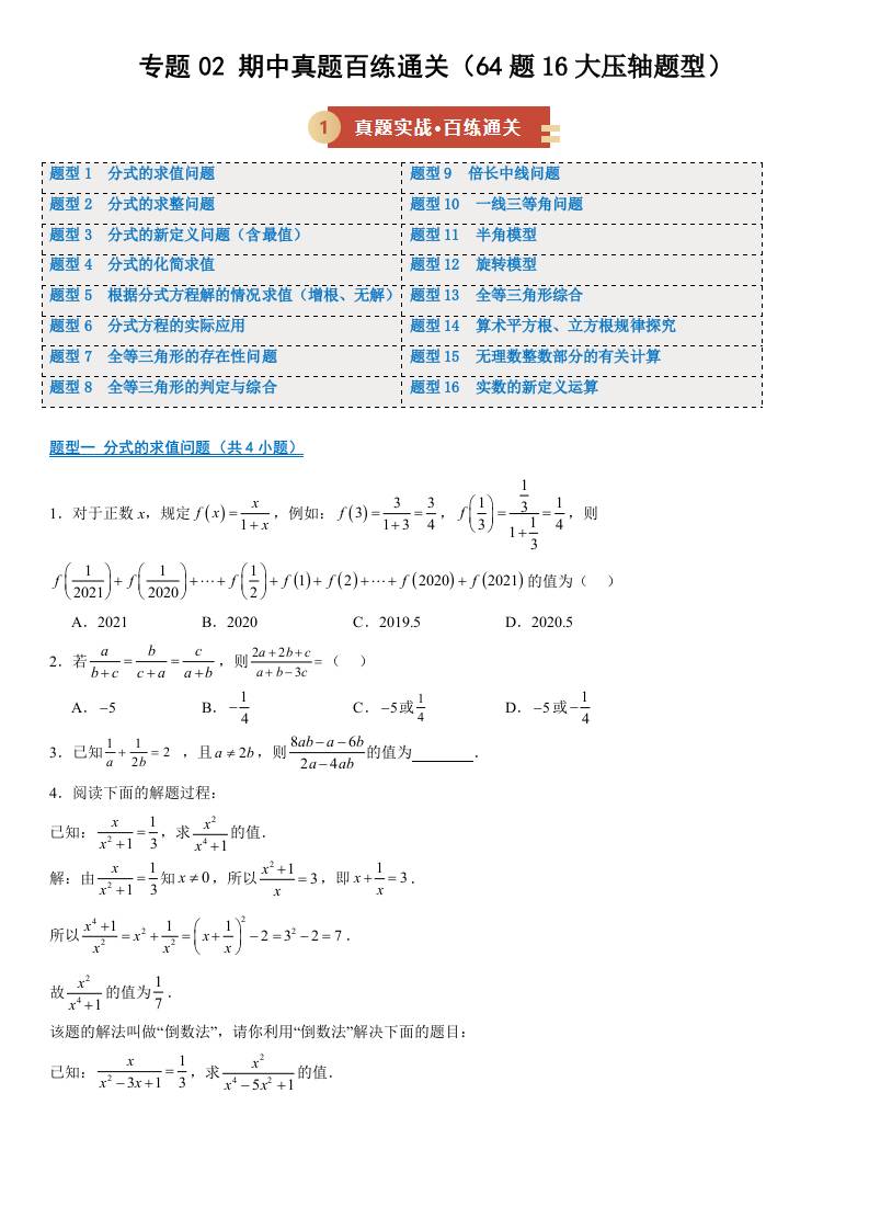 【八上冀教数学】期中真题百练通关64题16大压轴题型(期中专项训练)(原卷版)八年级数学上学期新教材冀教版