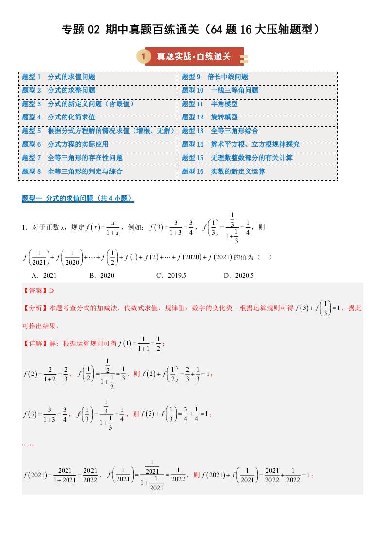 【八上冀教数学】期中真题百练通关64题16大压轴题型(期中专项训练)(解析版)八年级数学上学期新教材冀教版