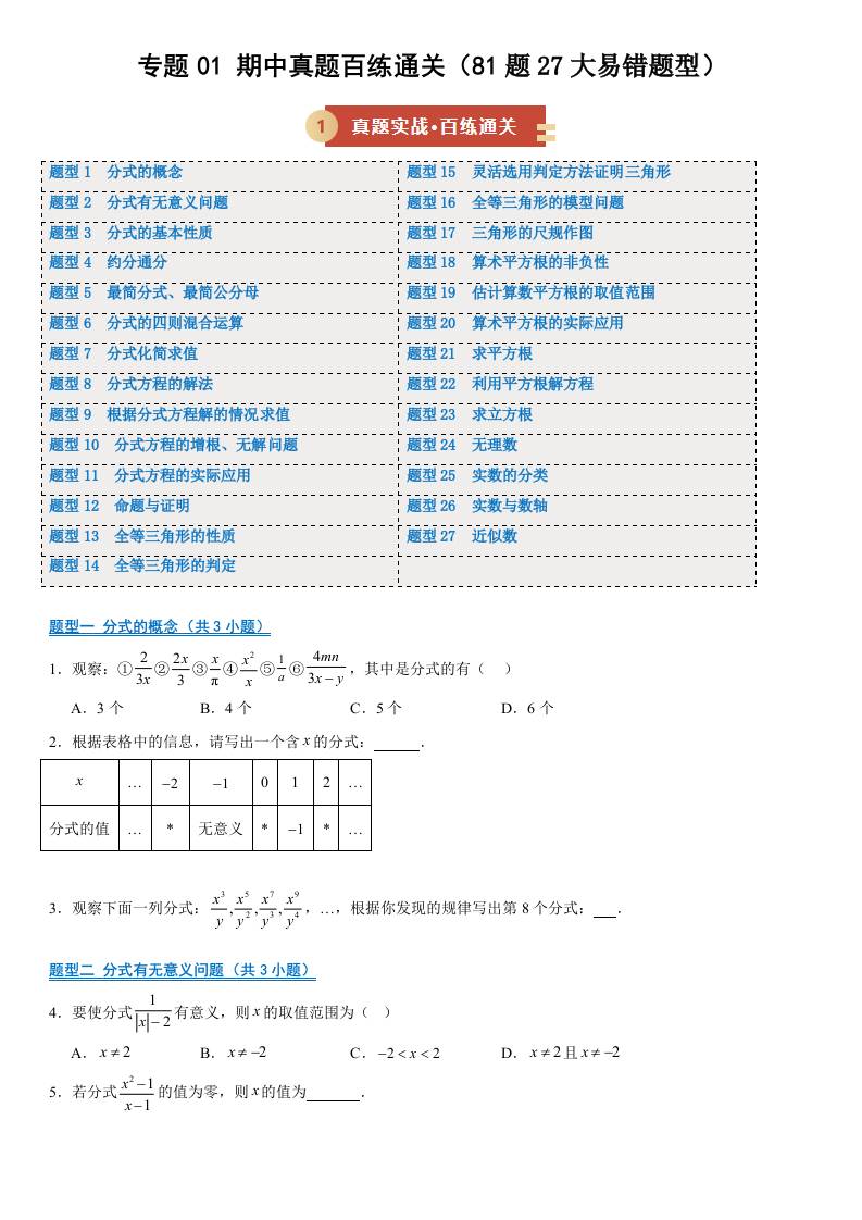 【八上冀教数学】期中真题百练通关81题27大易错题型(期中专项训练)(原卷版)八年级数学上学期新教材冀教版