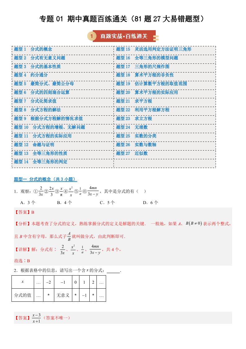 【八上冀教数学】期中真题百练通关81题27大易错题型(期中专项训练)(解析版)八年级数学上学期新教材冀教版