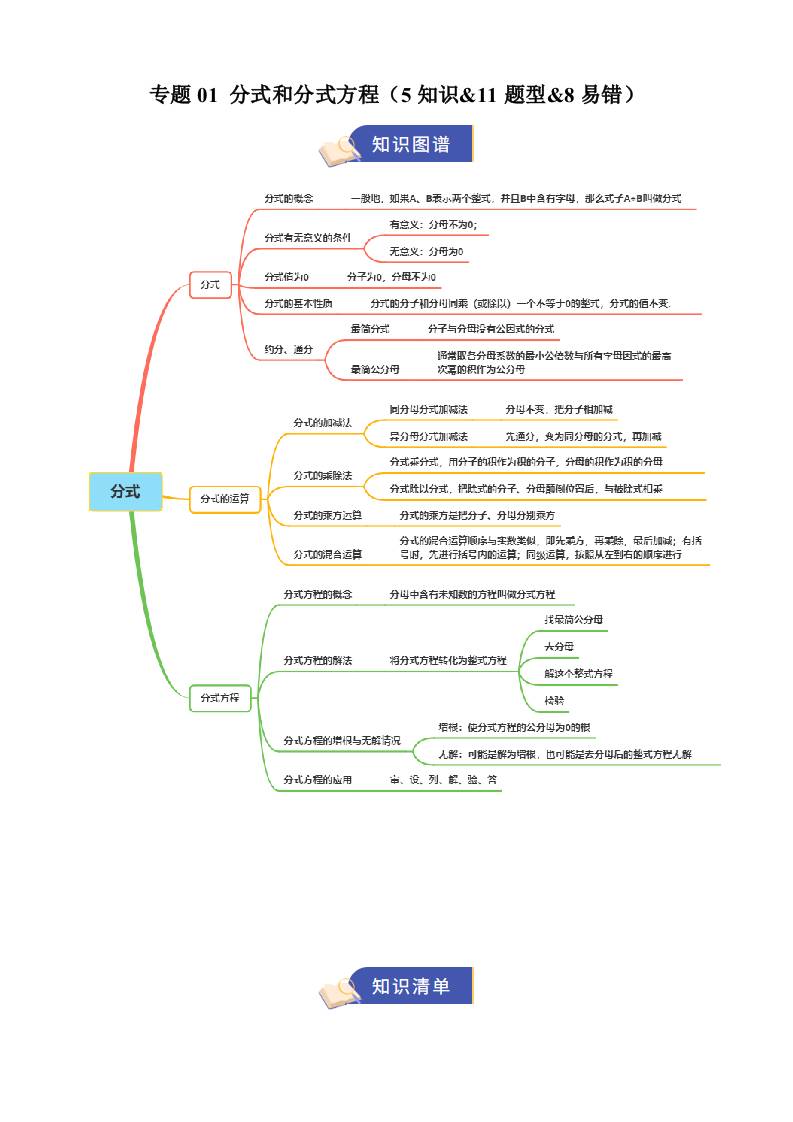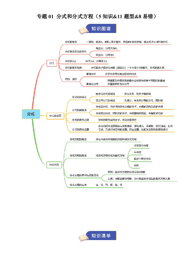 【八上冀教数学】清单01 分式和分式方程(期中知识清单)(5知识&11题型&8易错)(原卷版)