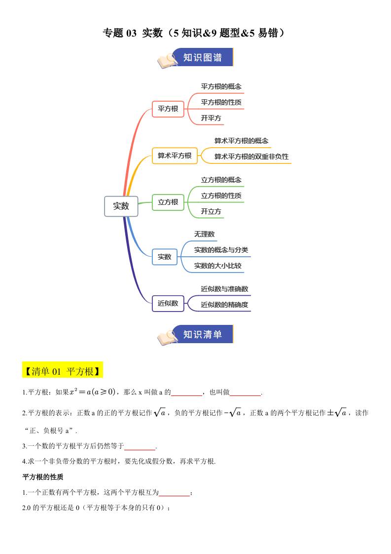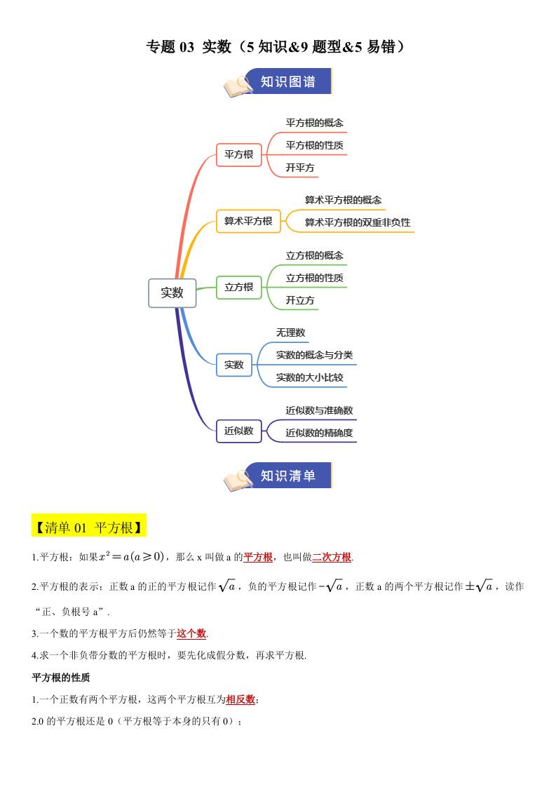 【八上冀教数学】清单03 实数(期中知识清单)(5知识&9题型&5易错)(解析版)