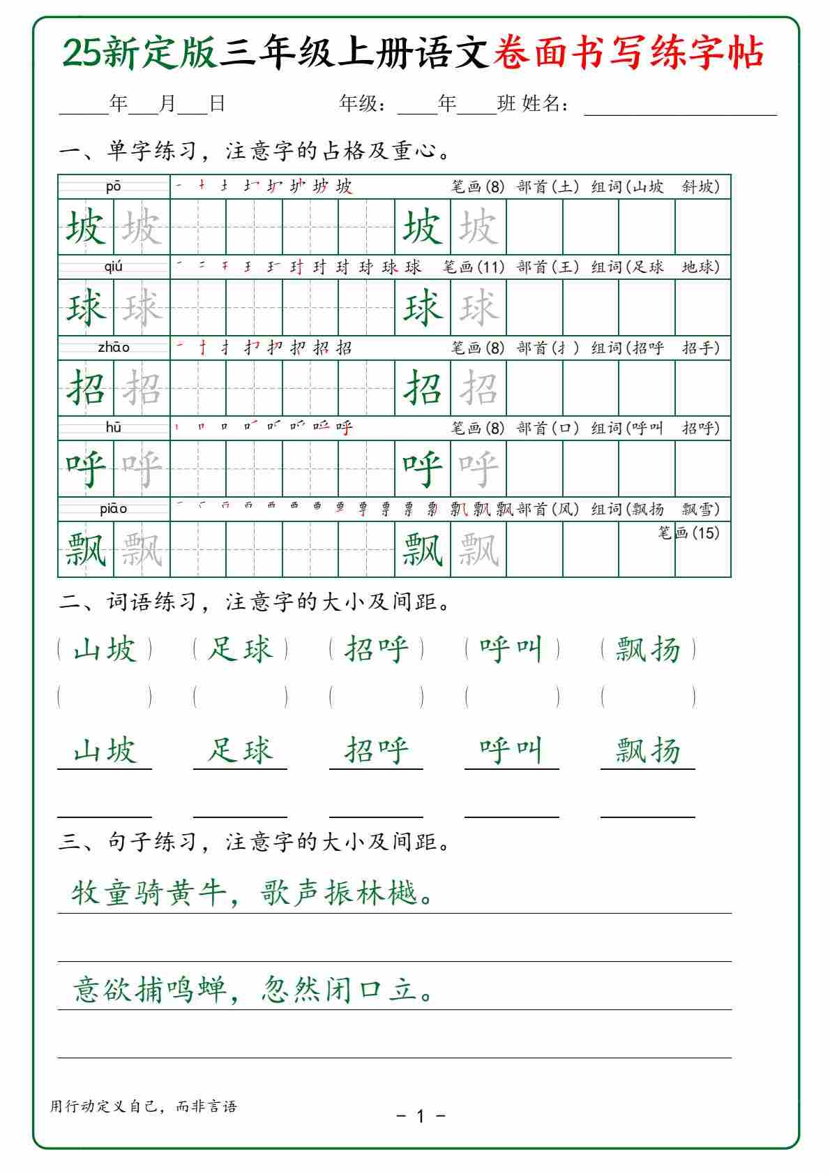 三(上)语文【25新全册课后生字组词(写字表一类字+识字表二类字)16页 (1)