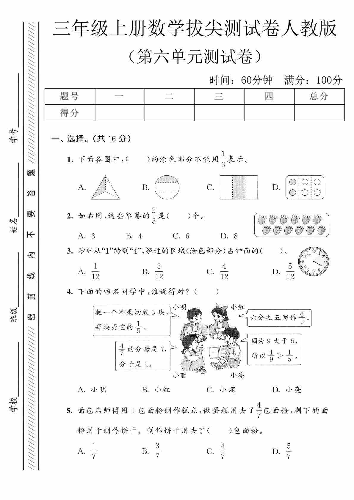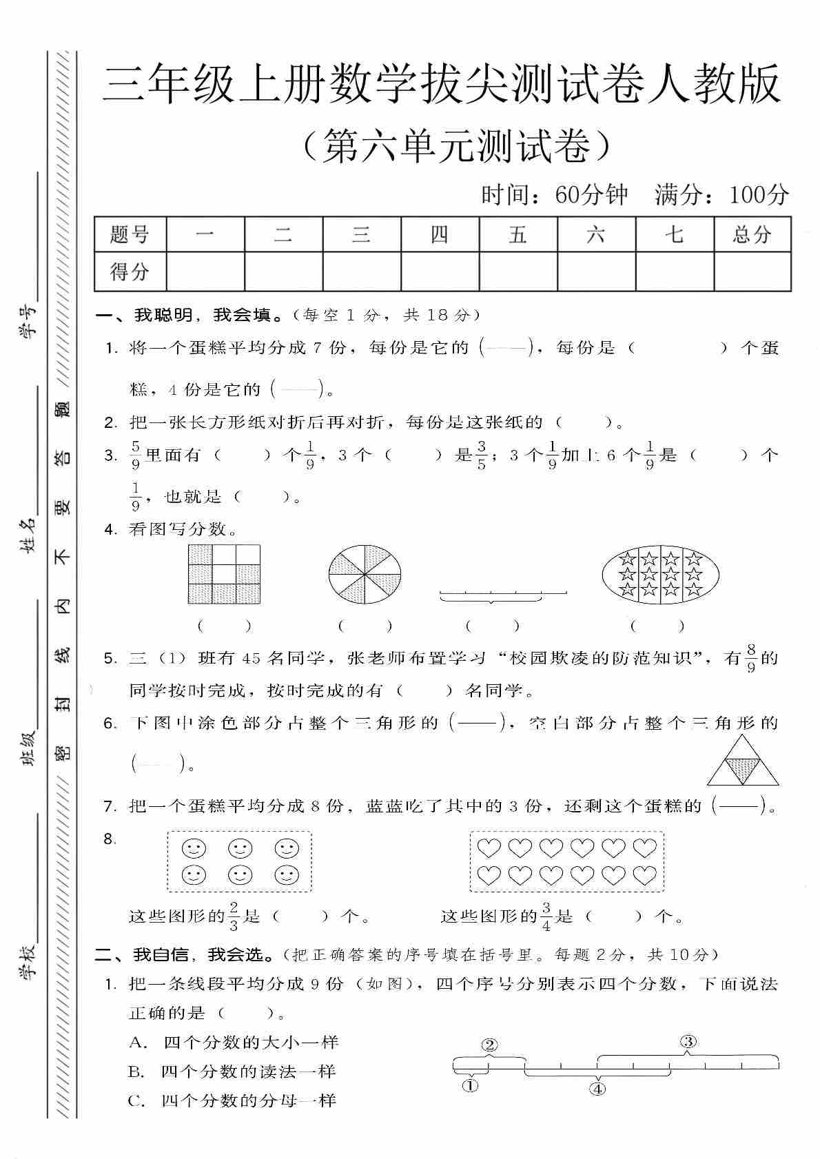 三年级(上)数学第五单元拔尖测试卷3《人教版》