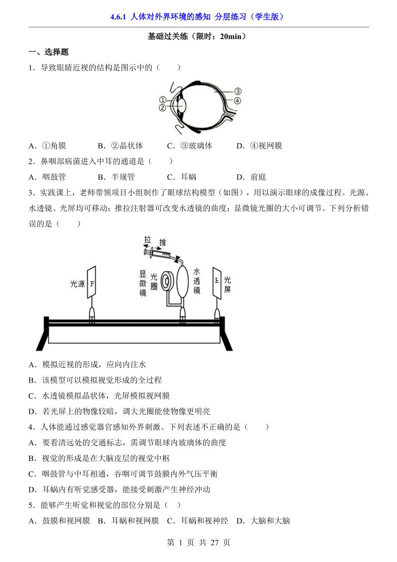 4.6.1 人体对外界环境的感知(分层练习)