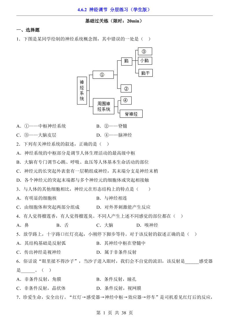 4.6.2 神经调节(分层练习)