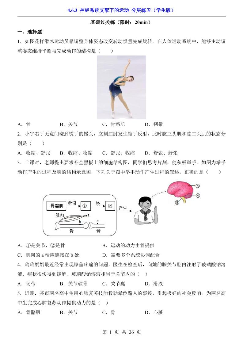 4.6.3 神经系统支配下的运动(分层练习)